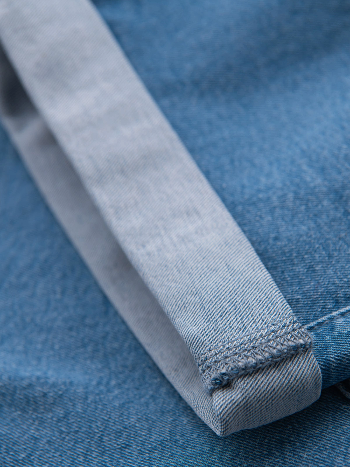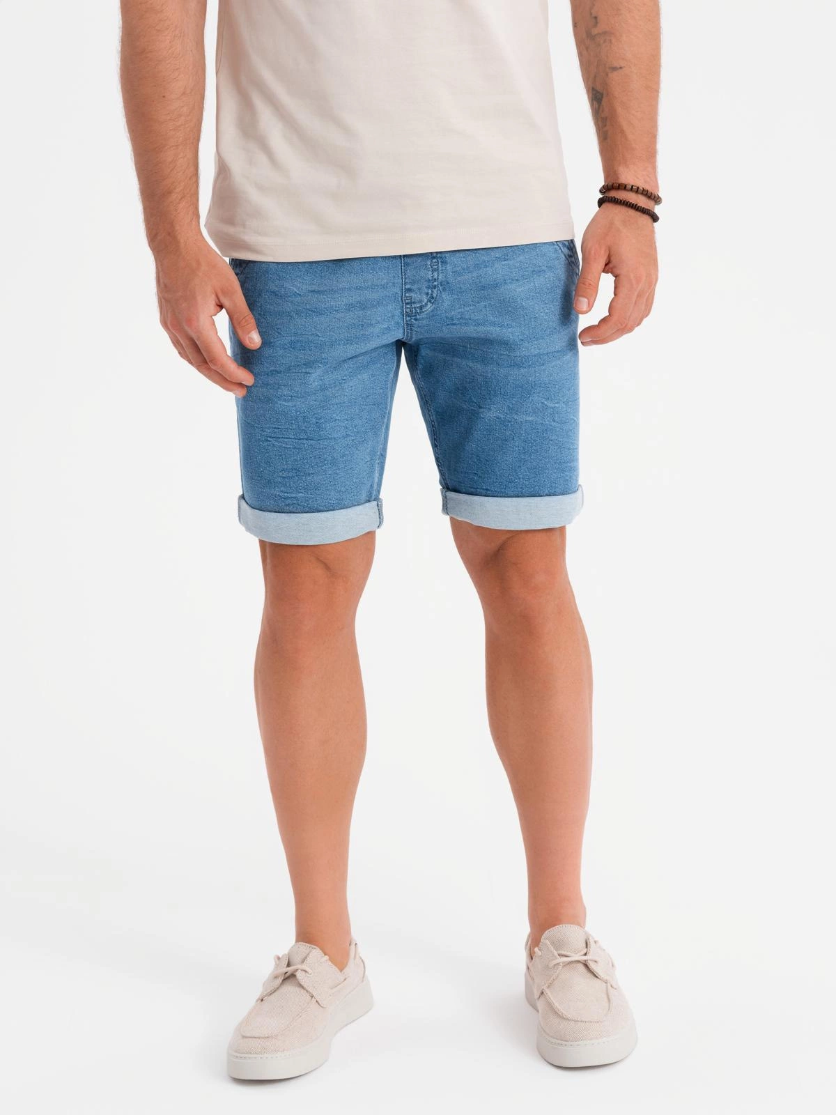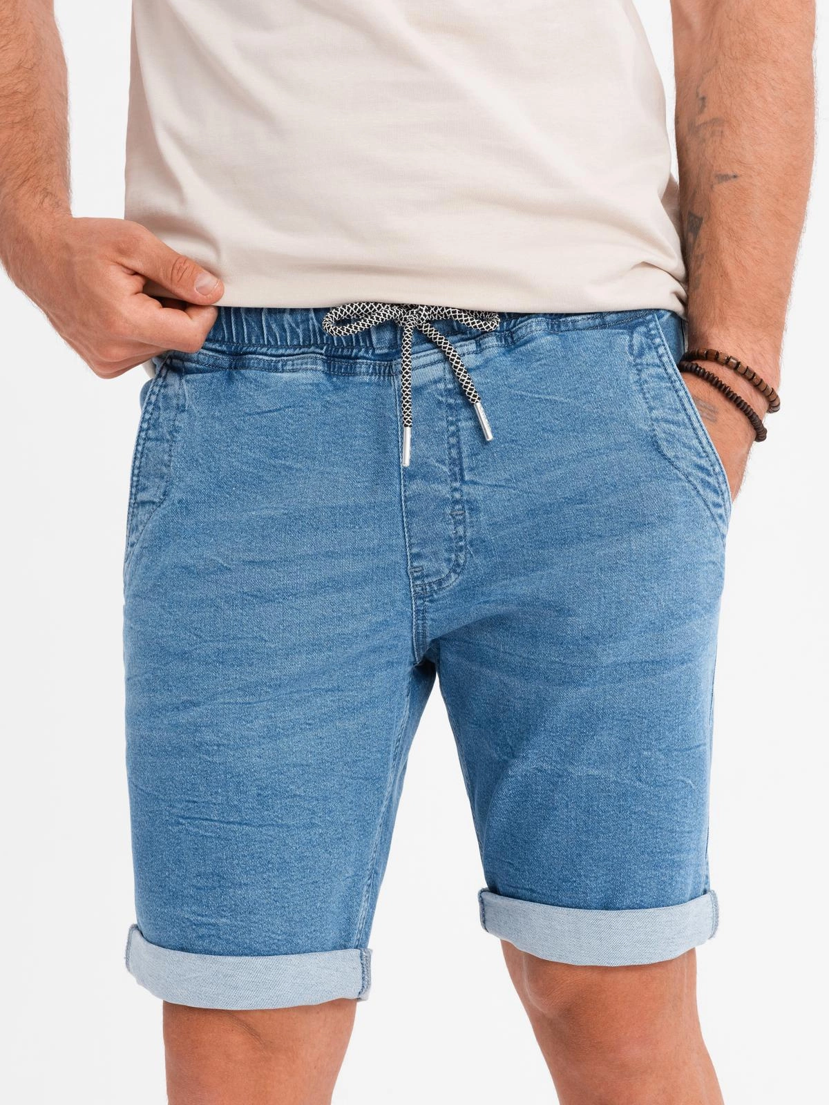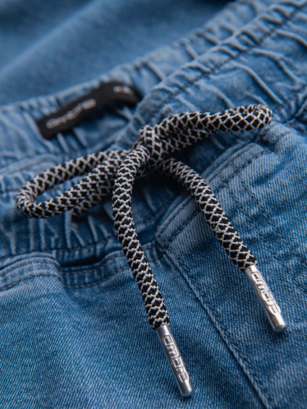 Men's summer shorts from the Ombre Denim collection are a combination of classic denim and modern casualness. Made of soft, washed fabric with added elastane, they provide comfortable wear and a stylish look. An elastic band with drawstring adjustment and a rolled-up leg add a lightweight and streetwear touch. Practical pockets, stitched trims and subtle details create an ideal base for urban and casual styling for warmer days.