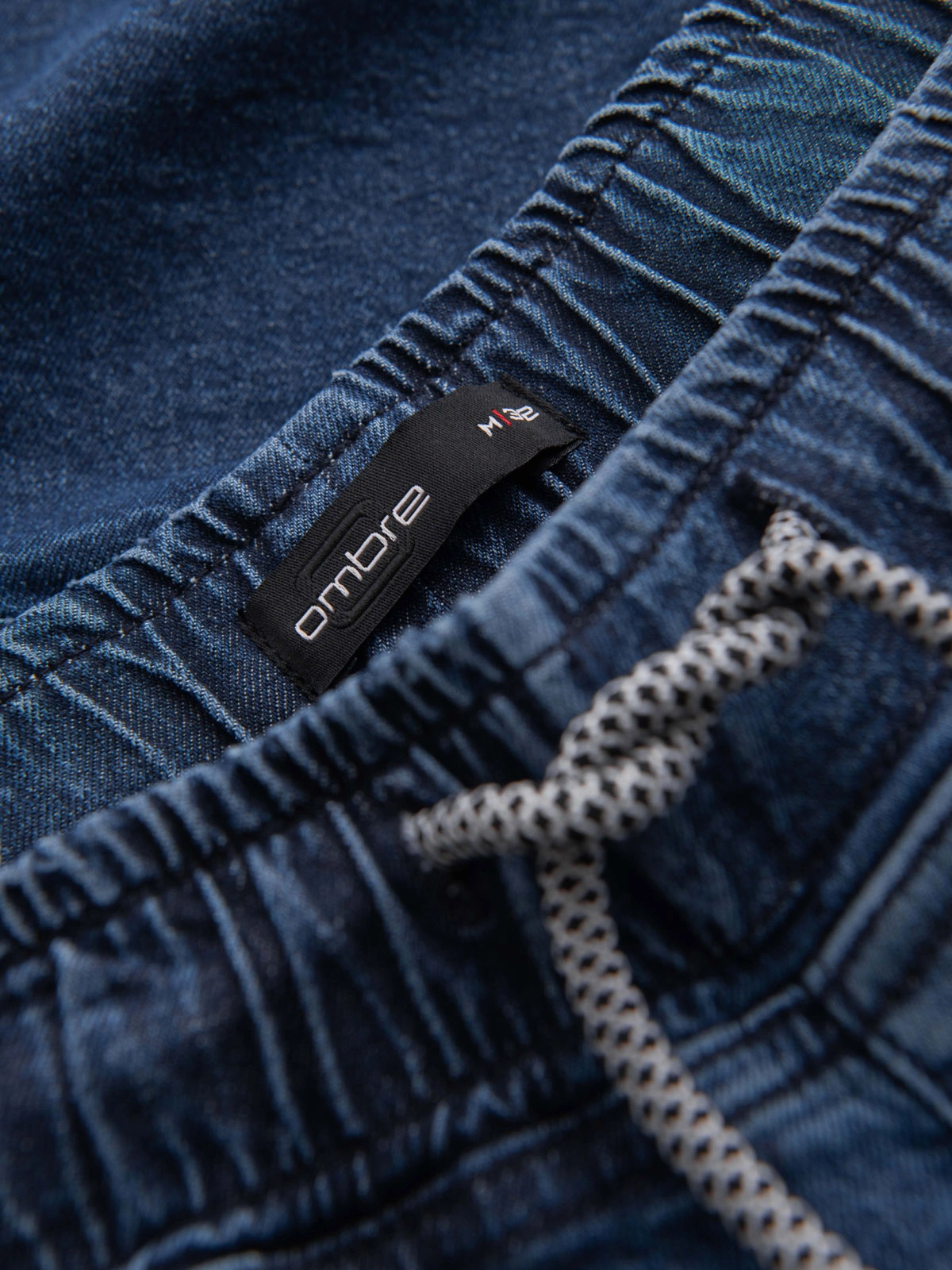 Men's summer shorts from the Ombre Denim collection are a combination of classic denim and modern casualness. Made of soft, washed fabric with added elastane, they provide comfortable wear and a stylish look. An elastic band with drawstring adjustment and a rolled-up leg add a lightweight and streetwear touch. Practical pockets, stitched trims and subtle details create an ideal base for urban and casual styling for warmer days.