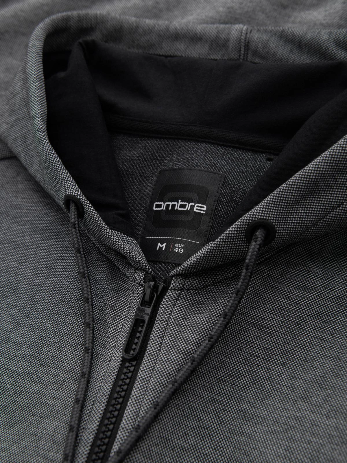The regular-fit zippered sweatshirt, made of two-tone pique knit, provides comfort and a fashionable everyday look. An adjustable hood and an unusually shaped pocket add a sporty touch. The sweatshirt is enriched with subtle details, such as logoed eyelets and drawstring ends. Contrasting welts add to its character and style.