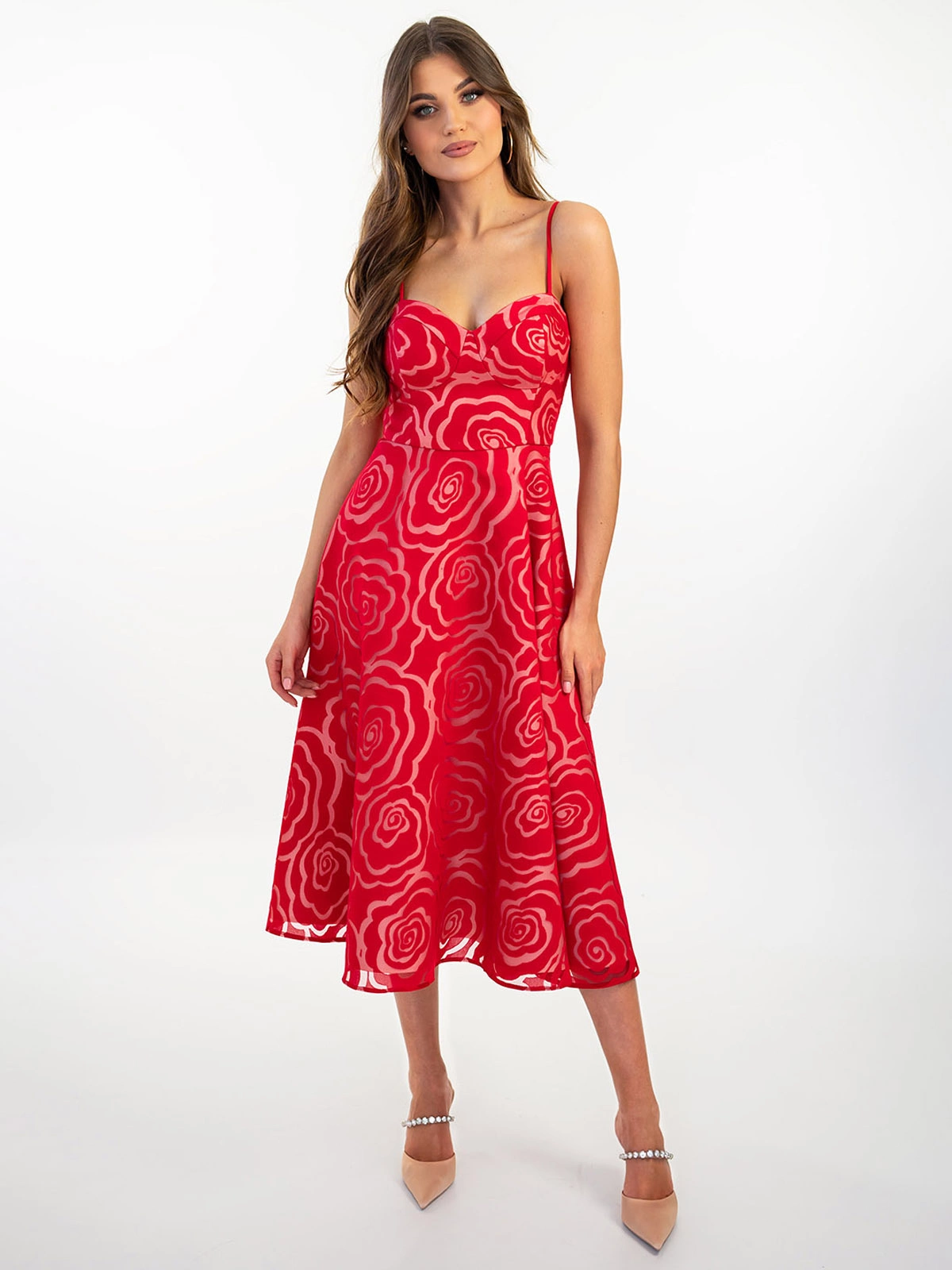 MARILYN midi dress with flowers DLR134 - red