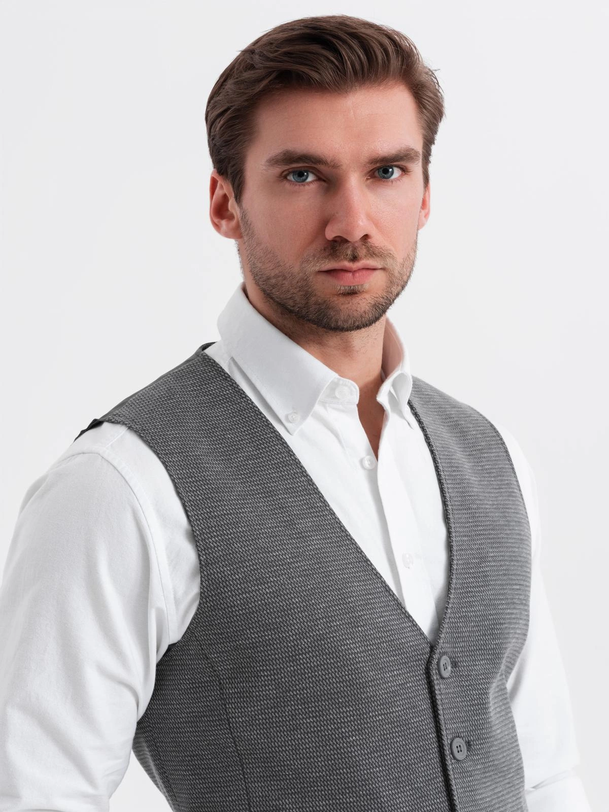 Elegance and casualness in a modern edition - this set from the QUINTESSENCE collection is a proposal for men who appreciate class without giving up comfort. A tailored vest and classic shorts create a cohesive, stylish whole. The characteristic structure of the knitwear and subtle details make the set perfect for both everyday wear and informal summer occasions.