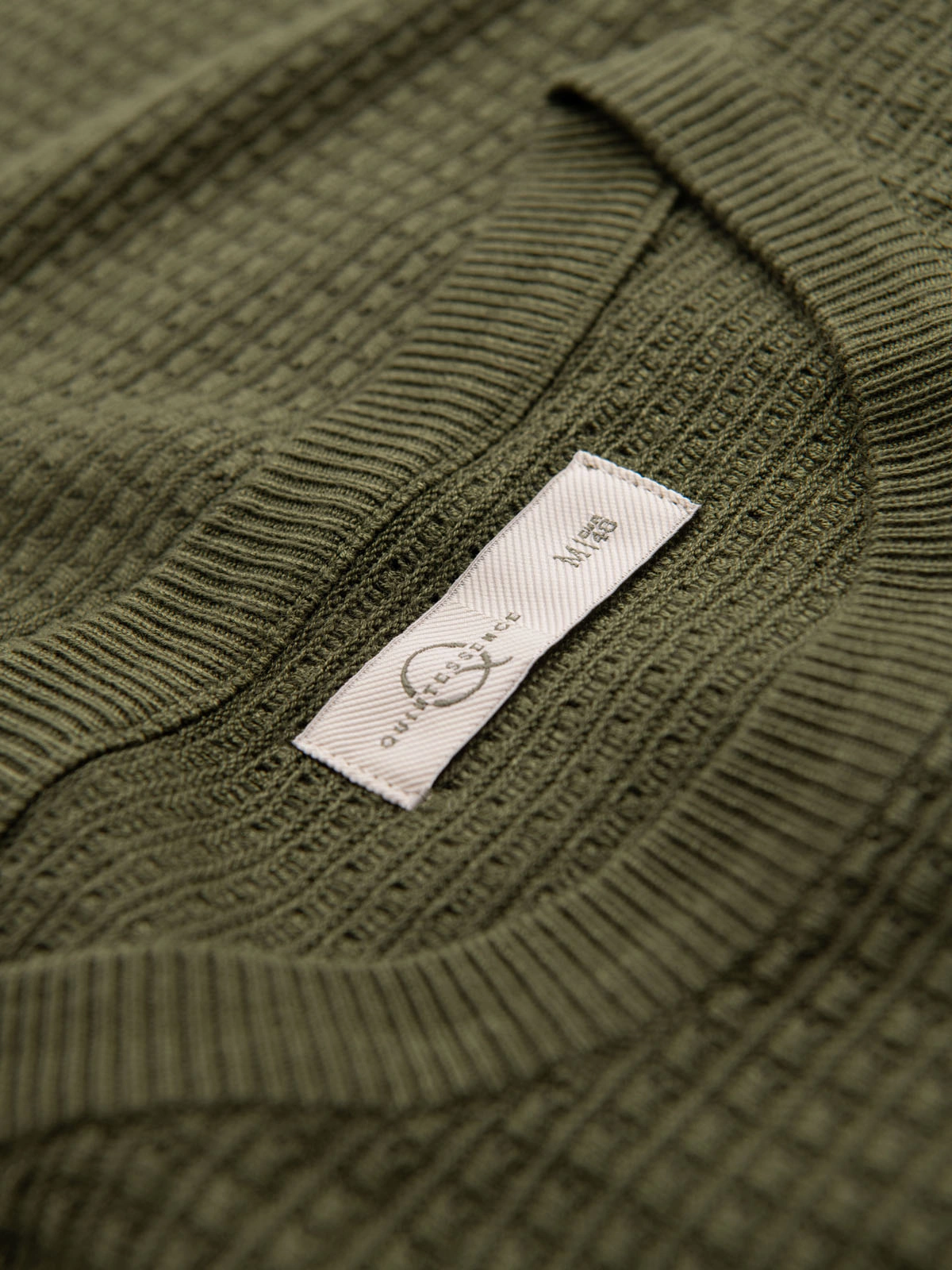 Minimalism with a twist - this t-shirt from the Quintessence line proves that simple form can go hand in hand with distinctive design. The distinctive structure of the knitted fabric gives it a fashionable expression, while maintaining its universal character. It will be perfect for casual and semi-formal styling, emphasizing modern, masculine style. A great choice for warmer days - lightweight, breathable and pleasant to the skin.
