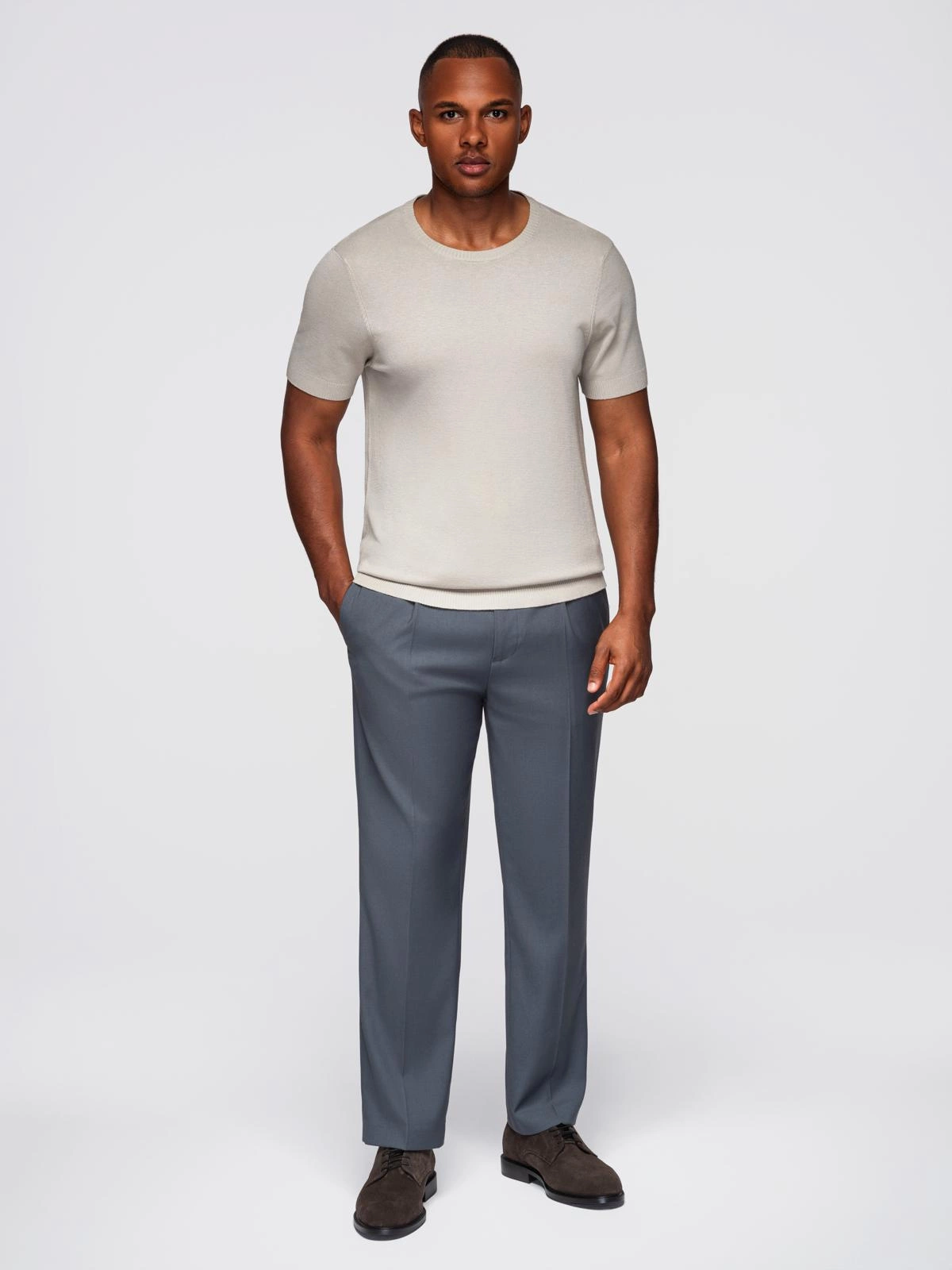 A modern interpretation of the classics, this knitted T-shirt from the Quintessence collection is for men who appreciate minimalist style and wearing comfort. High-quality material with a noble weave and a fitted cut give it an elegant, but casual character. It is an ideal base for many stylings - both casual and more sophisticated.