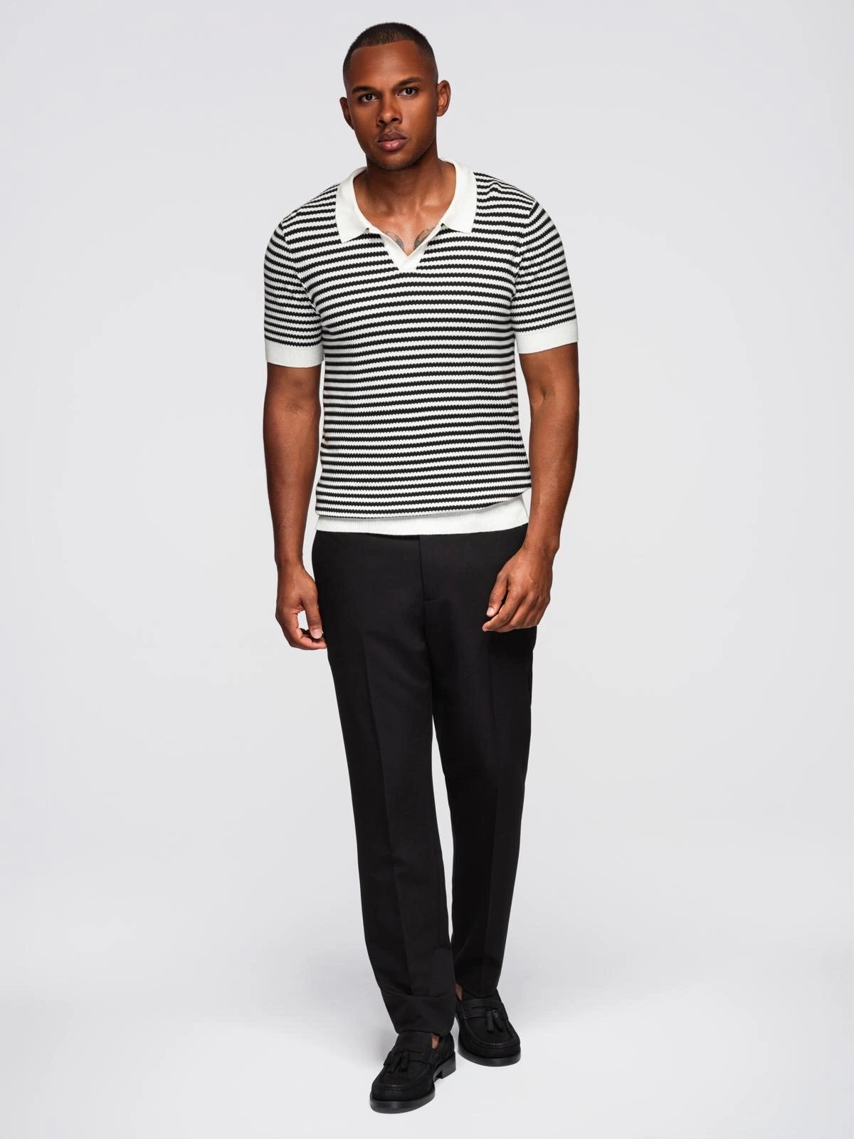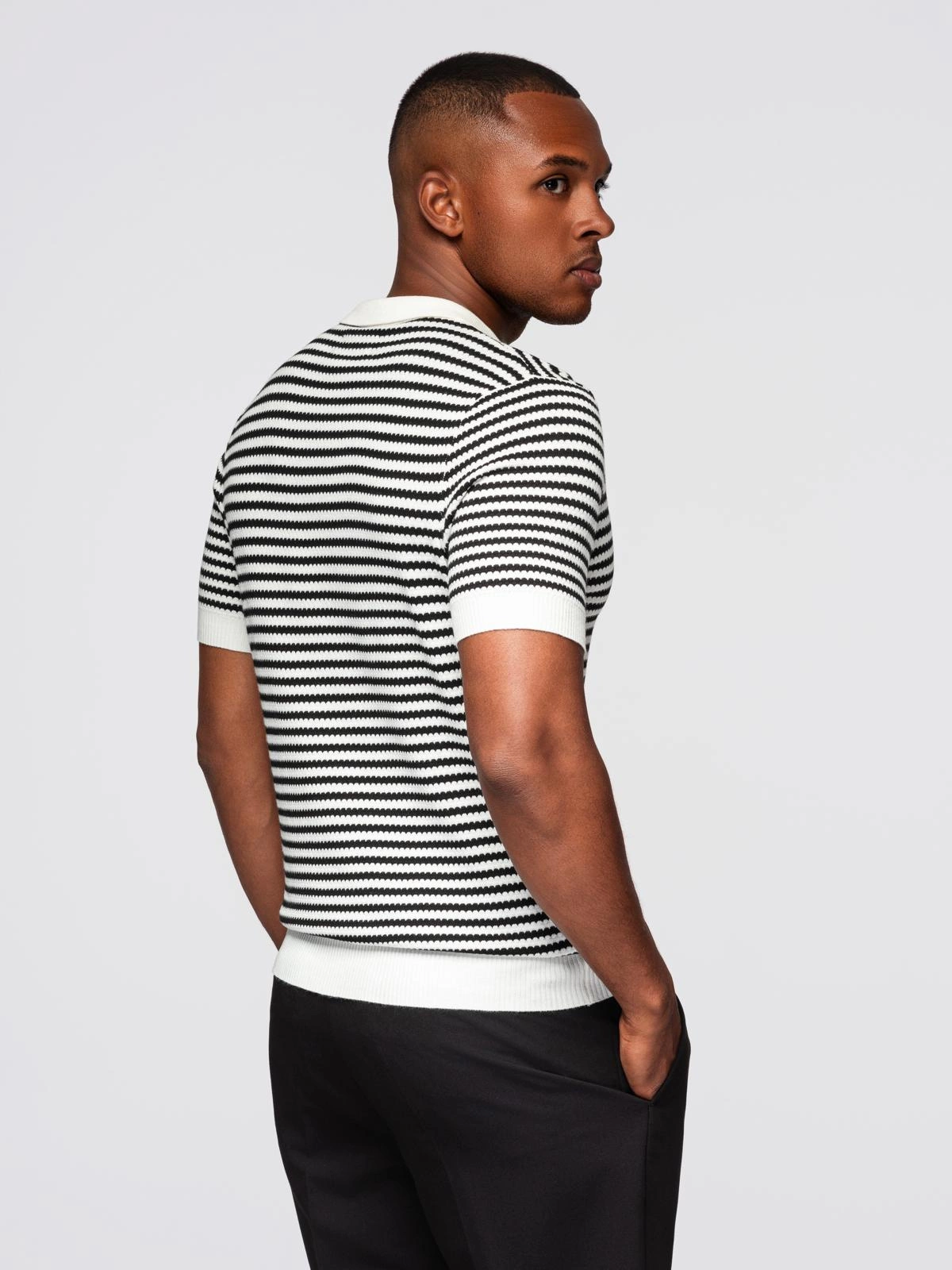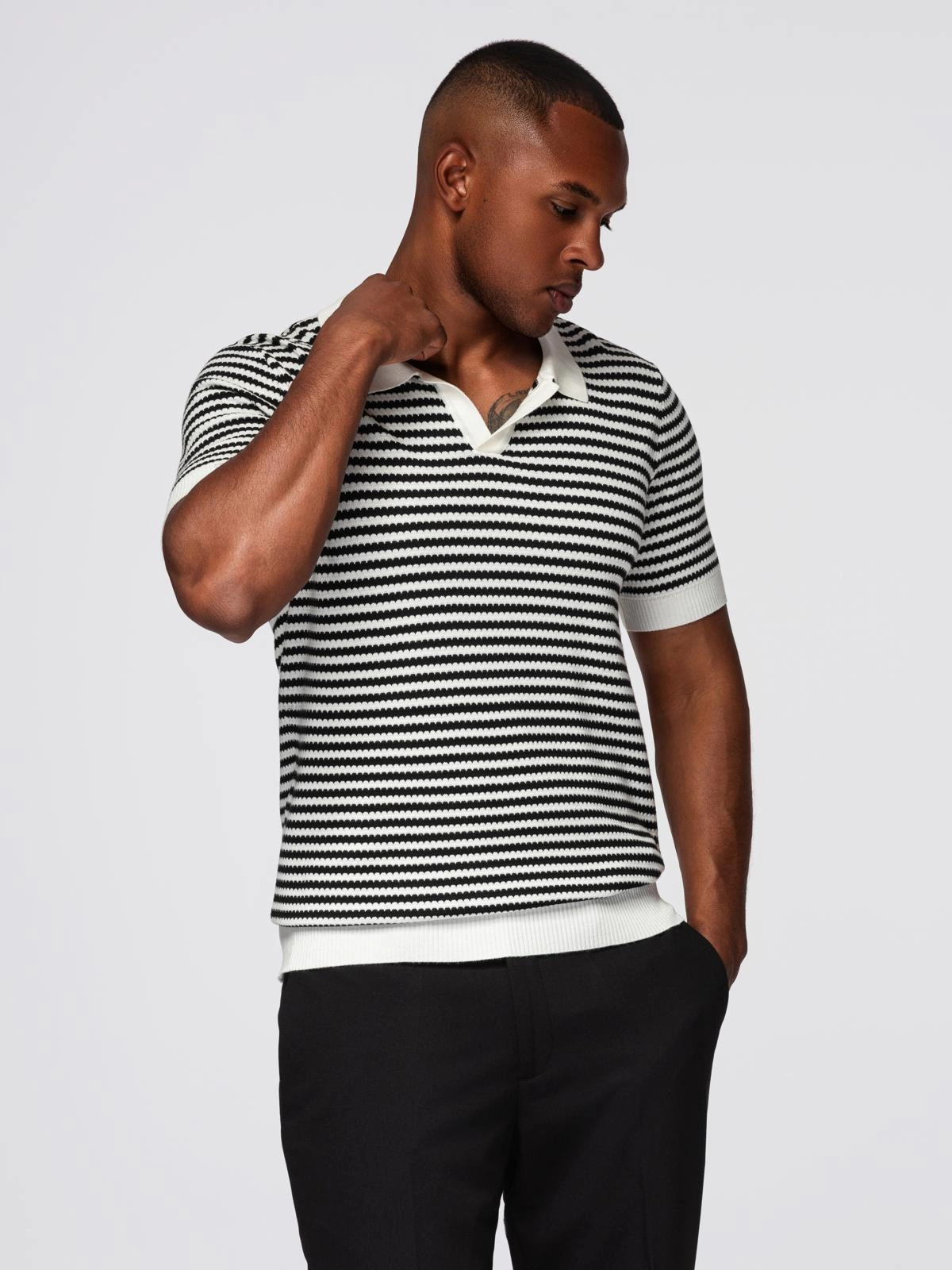 Stylish and full of character - this knit polo shirt combines a modern slim cut with a retro nautical touch. Distinctive stripes in contrasting colors and an open collar emphasize summer, unforced chic. An ideal choice for men who appreciate comfort and timeless style with a touch of freshness.
