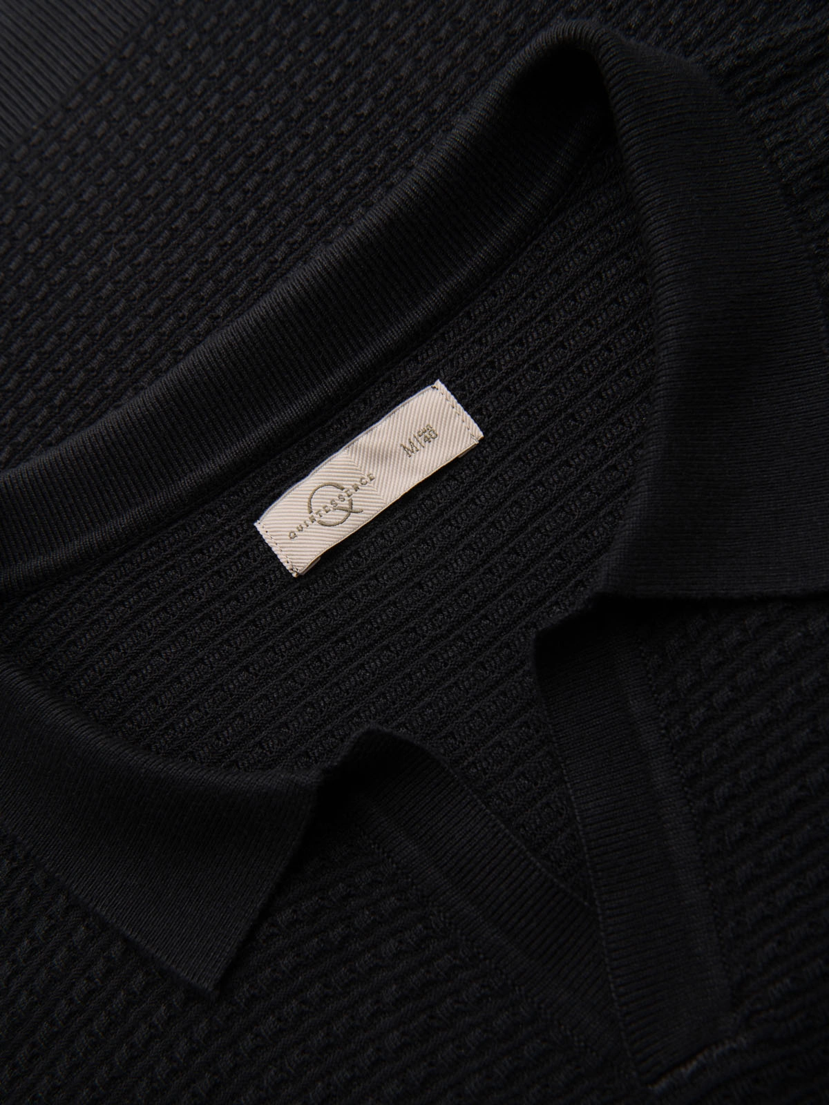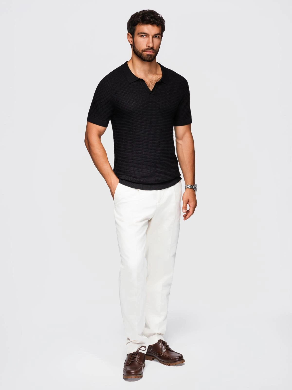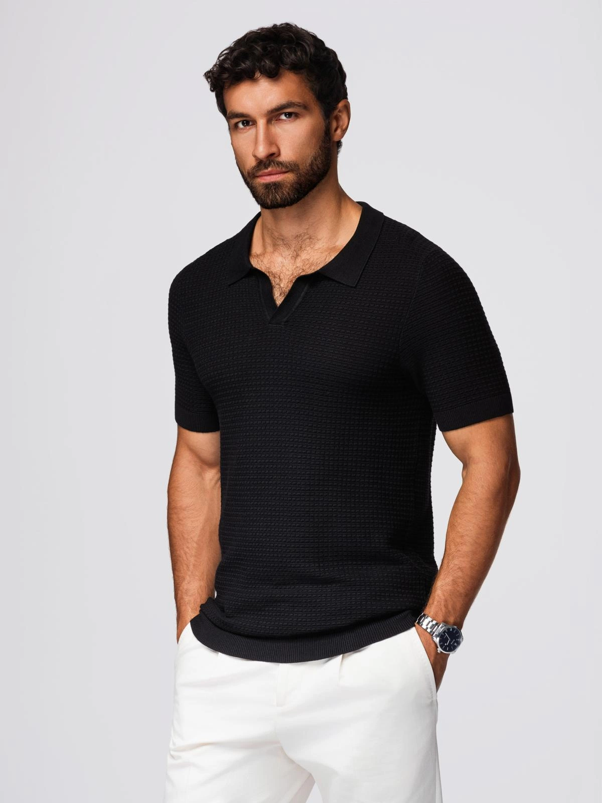 Modern, yet classic - this polo shirt is for men who appreciate comfort and subtle style. The distinctive knit weave gives it depth and stands out against smooth models. The fitted slim cut sits perfectly on the silhouette, and the open collar without buttons emphasizes lightness and casualness. Ideal for casual and smart casual styling.