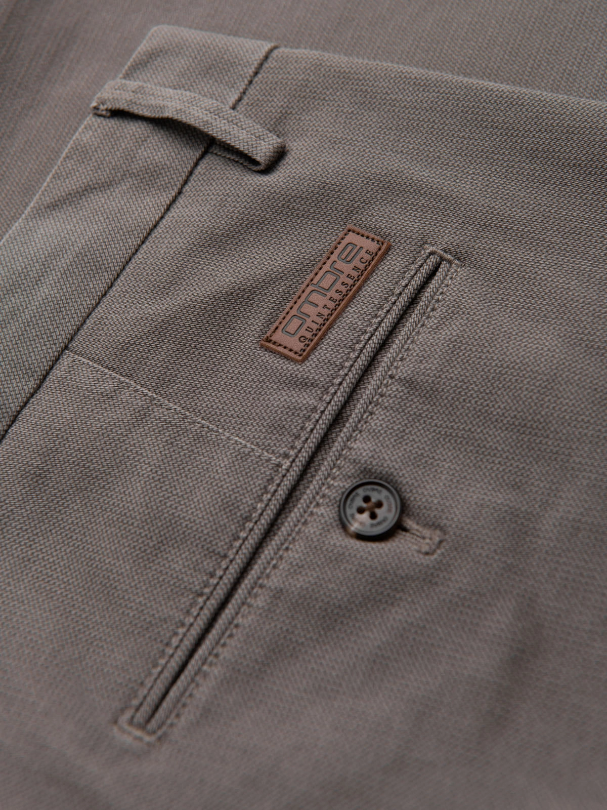 Men's chino pants from the QUINTESSENCE line are a combination of classics and comfort, which will work well in many everyday outfits. The model sewn from stretchy cotton fabric ensures freedom of movement and fit to the figure. The classic regular fit cut and neutral colors make them a versatile piece of clothing. Subtle details and branding add a modern touch.