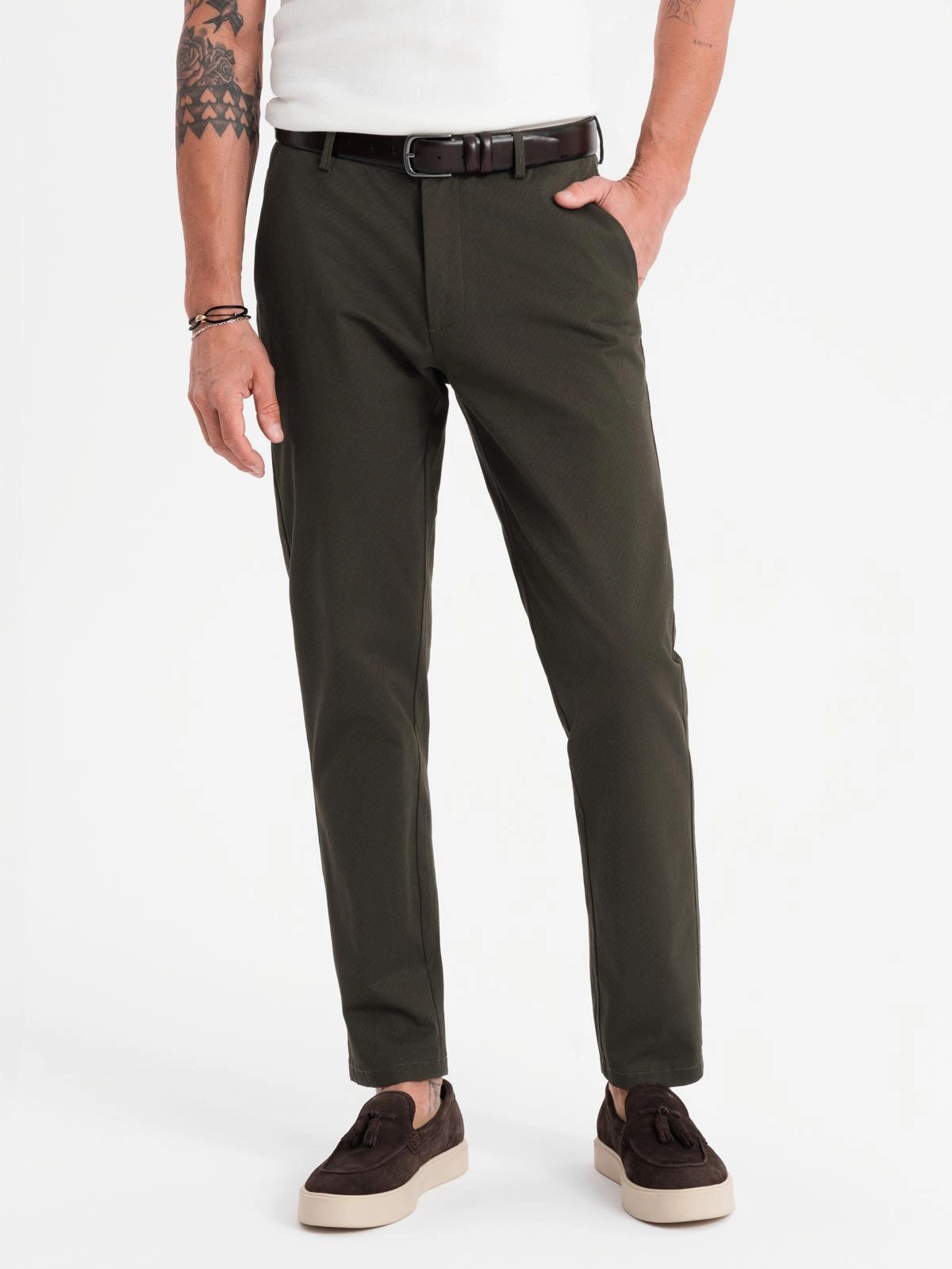 Men's chino pants from the QUINTESSENCE line are a combination of classics and comfort, which will work well in many everyday outfits. The model sewn from stretchy cotton fabric ensures freedom of movement and fit to the figure. The classic regular fit cut and neutral colors make them a versatile piece of clothing. Subtle details and branding add a modern touch.