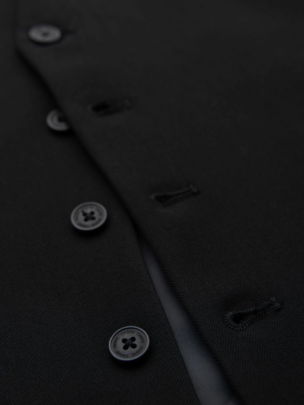 A stylish men's vest with a tailored fit, made of fabric in a classic herringbone pattern, is the perfect complement to smart casual styling. With a modern slim fit cut, it accentuates the silhouette and provides an elegant yet casual look. Subtle branding and thoughtful details make it a versatile choice for both the office and social gatherings. Pairs well with both a shirt and turtleneck. A versatile base for smart casual and more formal outfits. - Create a complete look with it!