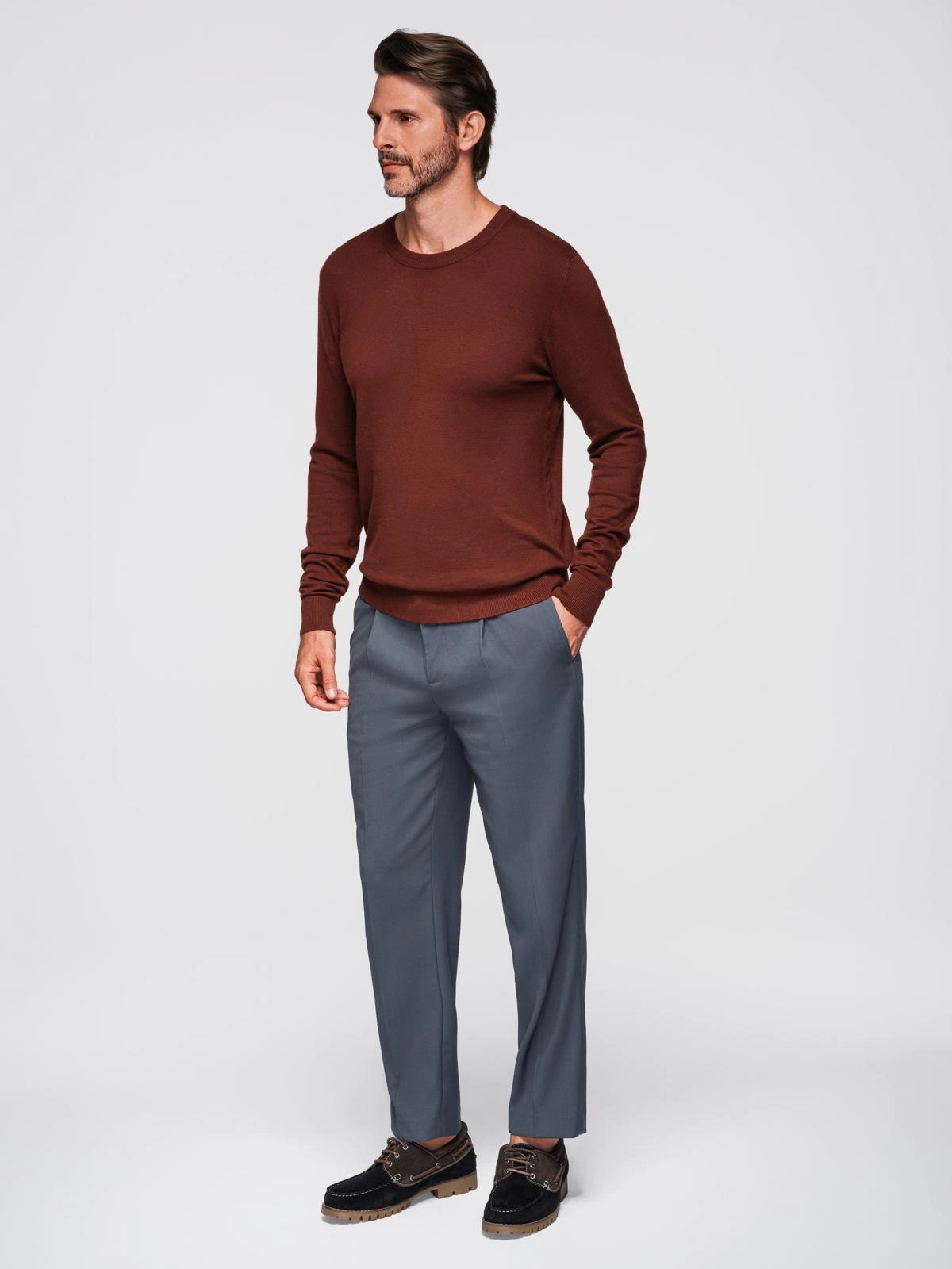 Stylish and extremely versatile men's sweater from the QUINTESSENCE line, which will go well with modern casual-elegant styling. Made of high-quality stretch knit with a classic weave, it fits perfectly to the figure and ensures comfort all day long. Subtle branding, refined finishing and timeless colors make this model perfect for both casual and more elegant styling.