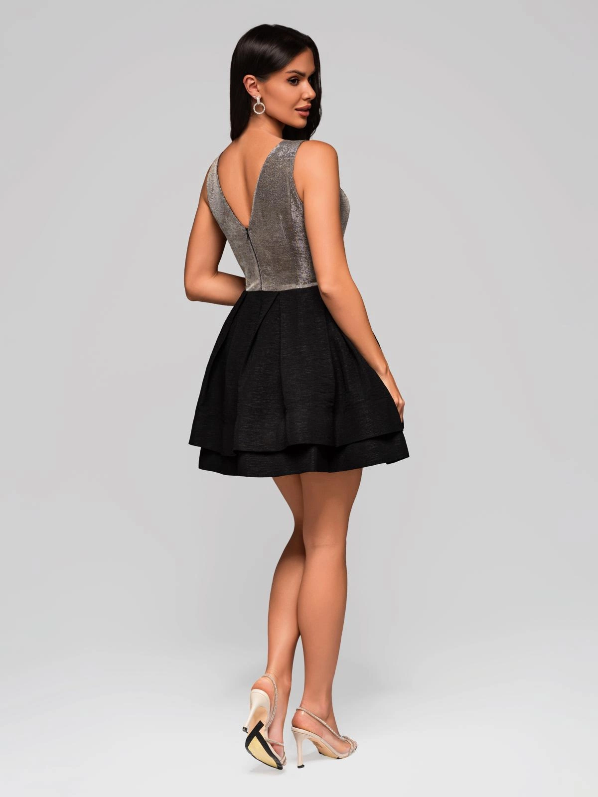 Women's mini flared dress with wide straps elegant DLR191 - black