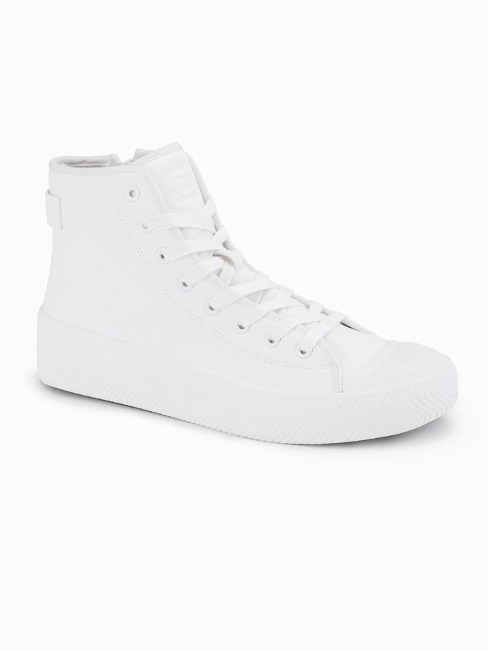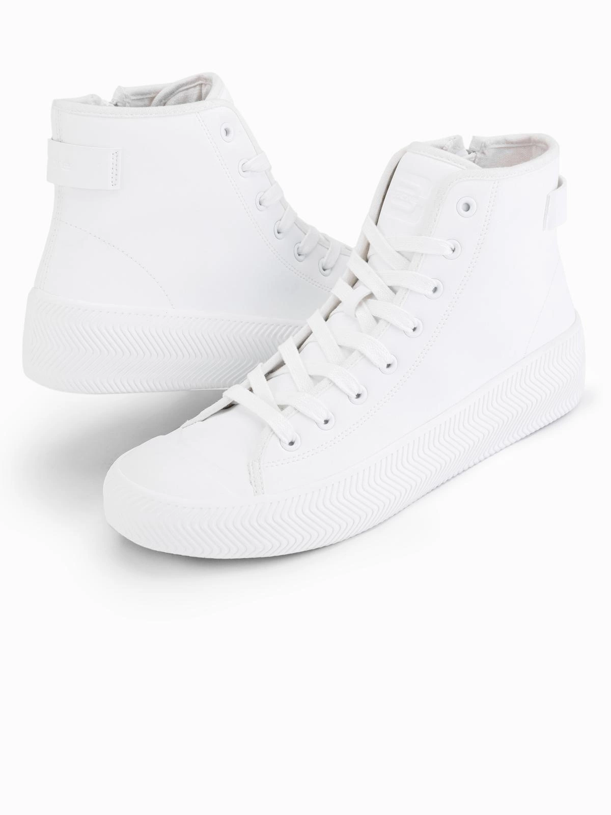Modern form of classic high-top sneakers. Made of synthetic leather with a texture reminiscent of natural leather, they fit perfectly with urban styling. The model is distinguished by a minimalist design, a dynamic sole and a functional zipper, which facilitates quick putting on. The atypical toe and geometric line of the sole add an individual character to the whole. This is an ideal proposition for those who appreciate comfort and a fashionable flair.