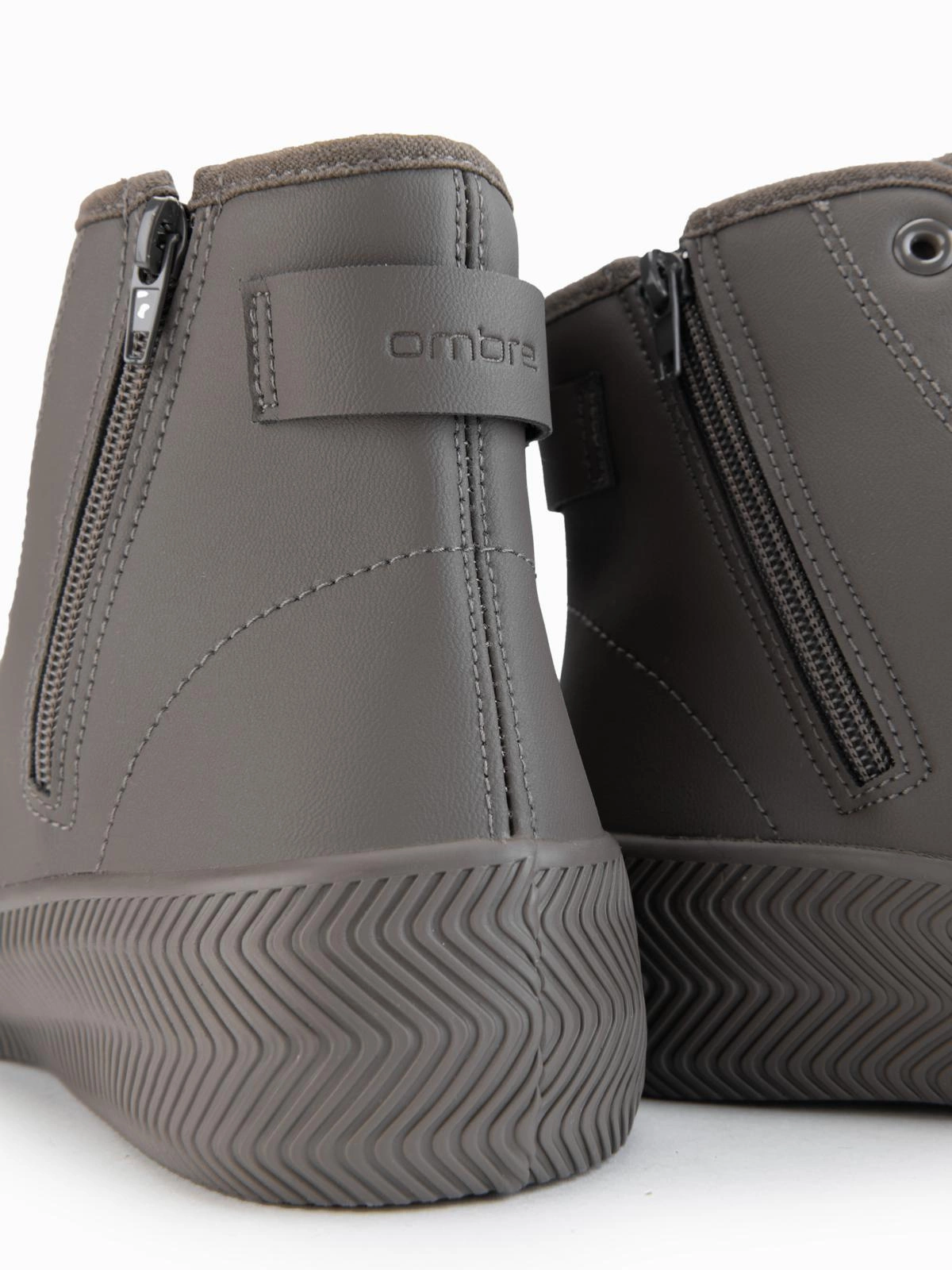 Modern form of classic high-top sneakers. Made of synthetic leather with a texture reminiscent of natural leather, they fit perfectly with urban styling. The model is distinguished by a minimalist design, a dynamic sole and a functional zipper, which facilitates quick putting on. The atypical toe and geometric line of the sole add an individual character to the whole. This is an ideal proposition for those who appreciate comfort and a fashionable flair.