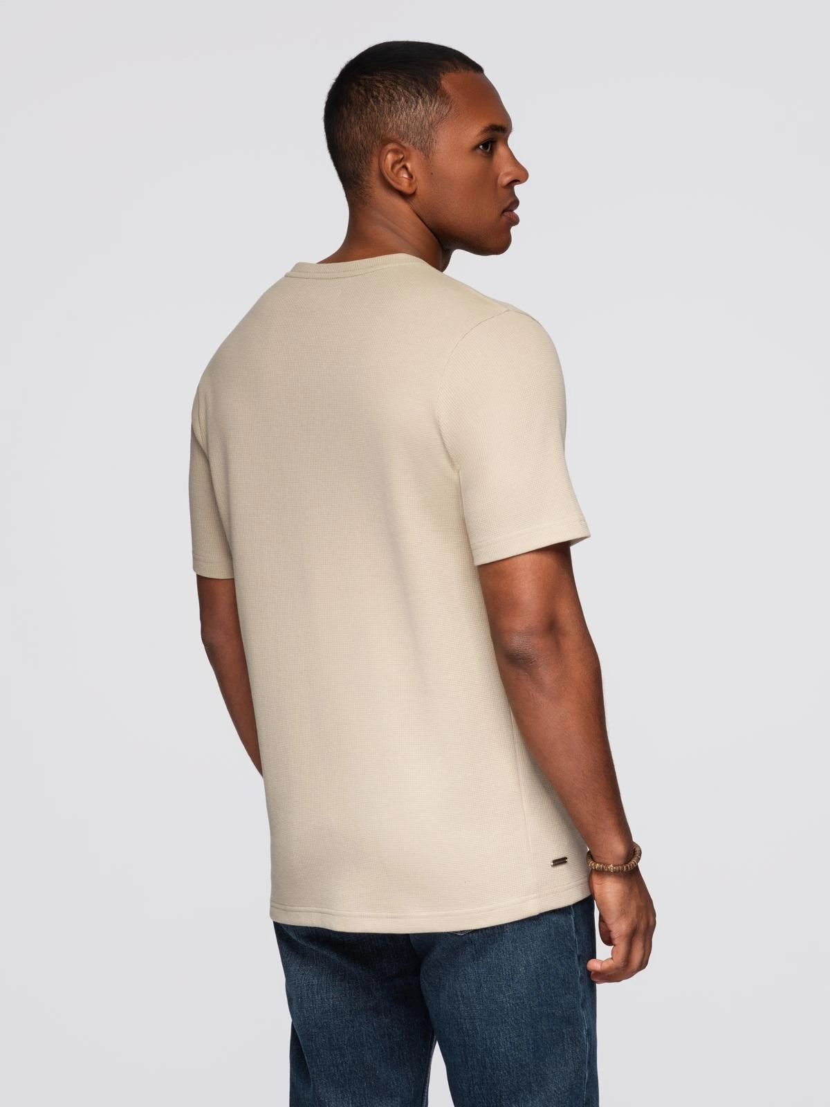 T-shirt that combines comfort with modern style. The model from the Ombre collection impresses with its subtle waffle texture and casual comfort fit, ideal for everyday wear. The round neckline and minimalist design make it perfect for a casual look. The metal pin at the bottom is a discreet accent that emphasizes the brand's character.