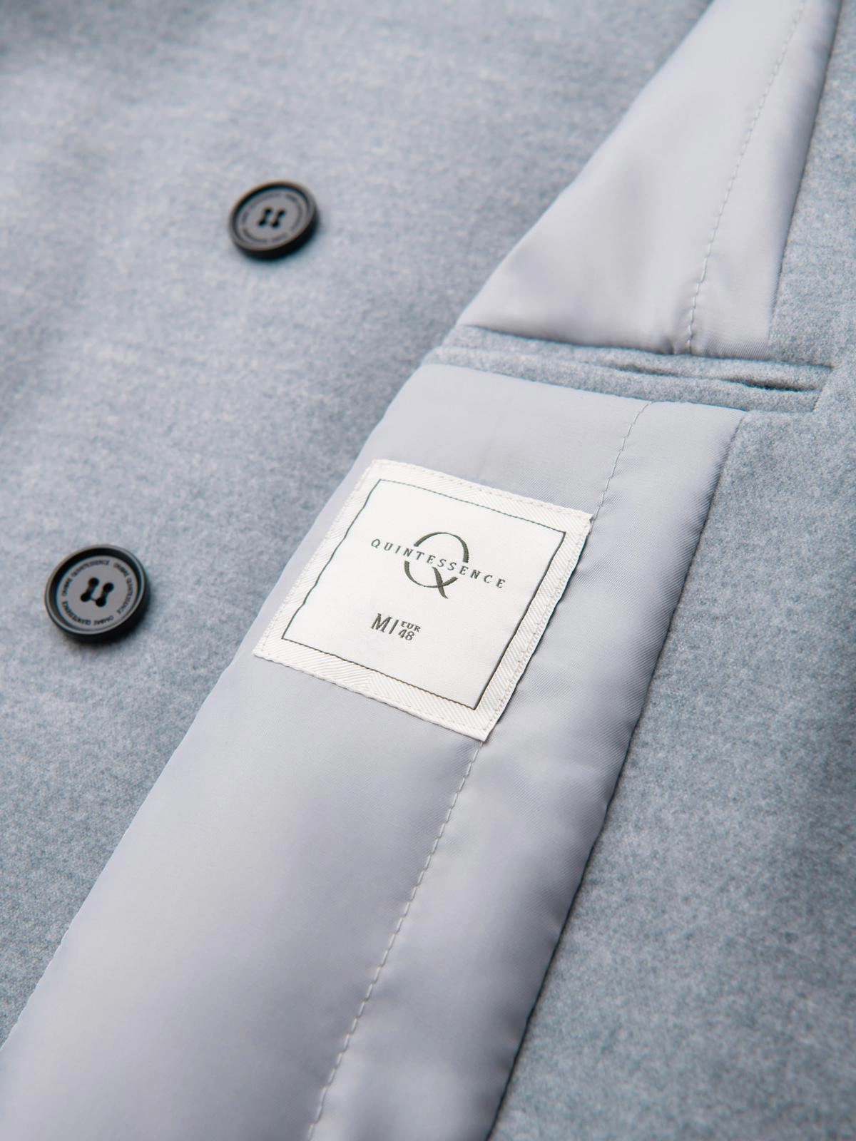- asymmetrical single-row button closure with concealed placket