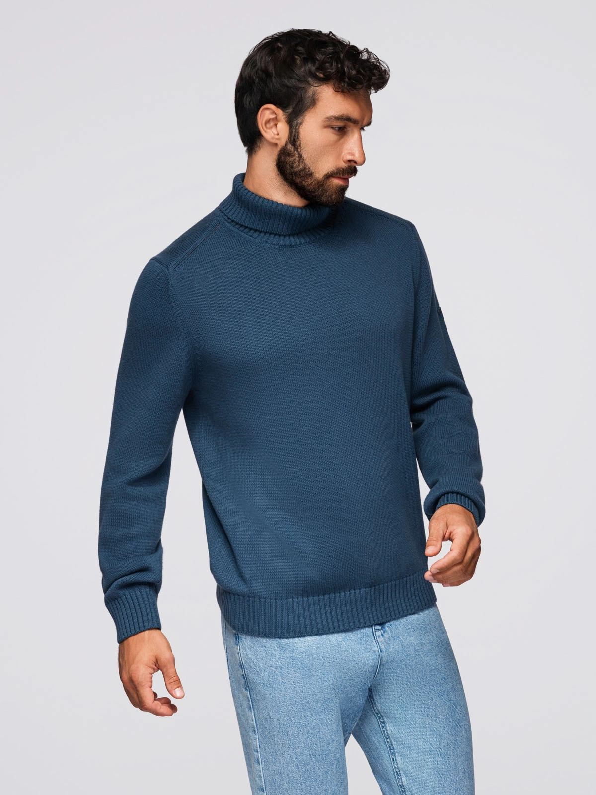 Classic cut and refined details - this turtleneck from the Ombre line is a must-have in the closet of a man who appreciates timeless style and comfort. Thanks to its pure cotton knit and refined construction, it will be perfect for both work and casual styling. Subtle design details, such as the offset shoulder seam and branding on the sleeve, add to its character.