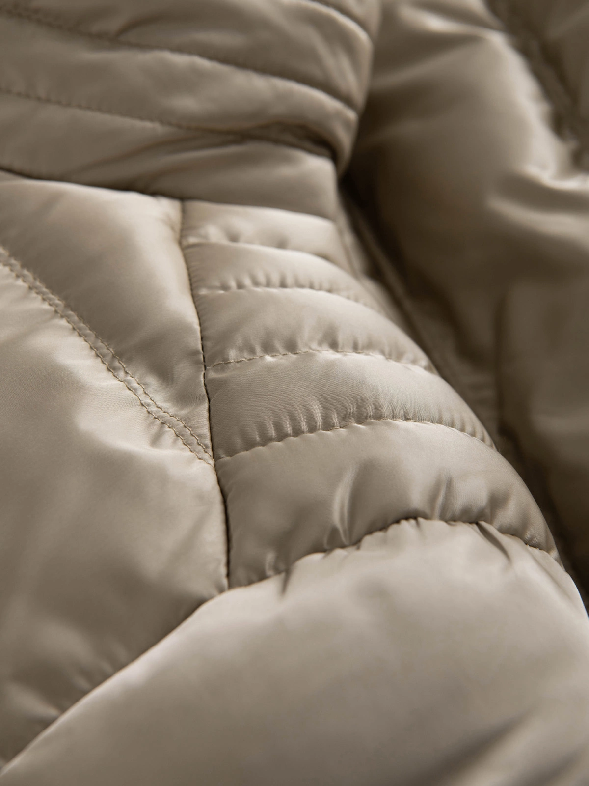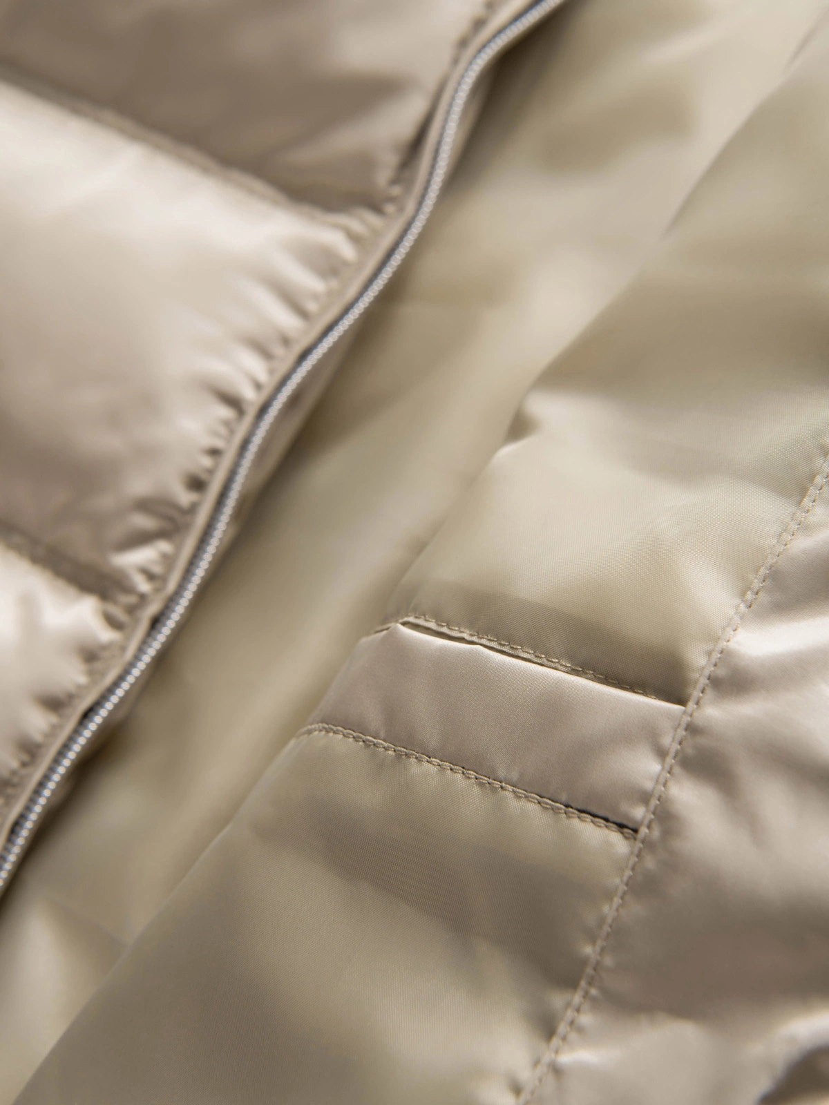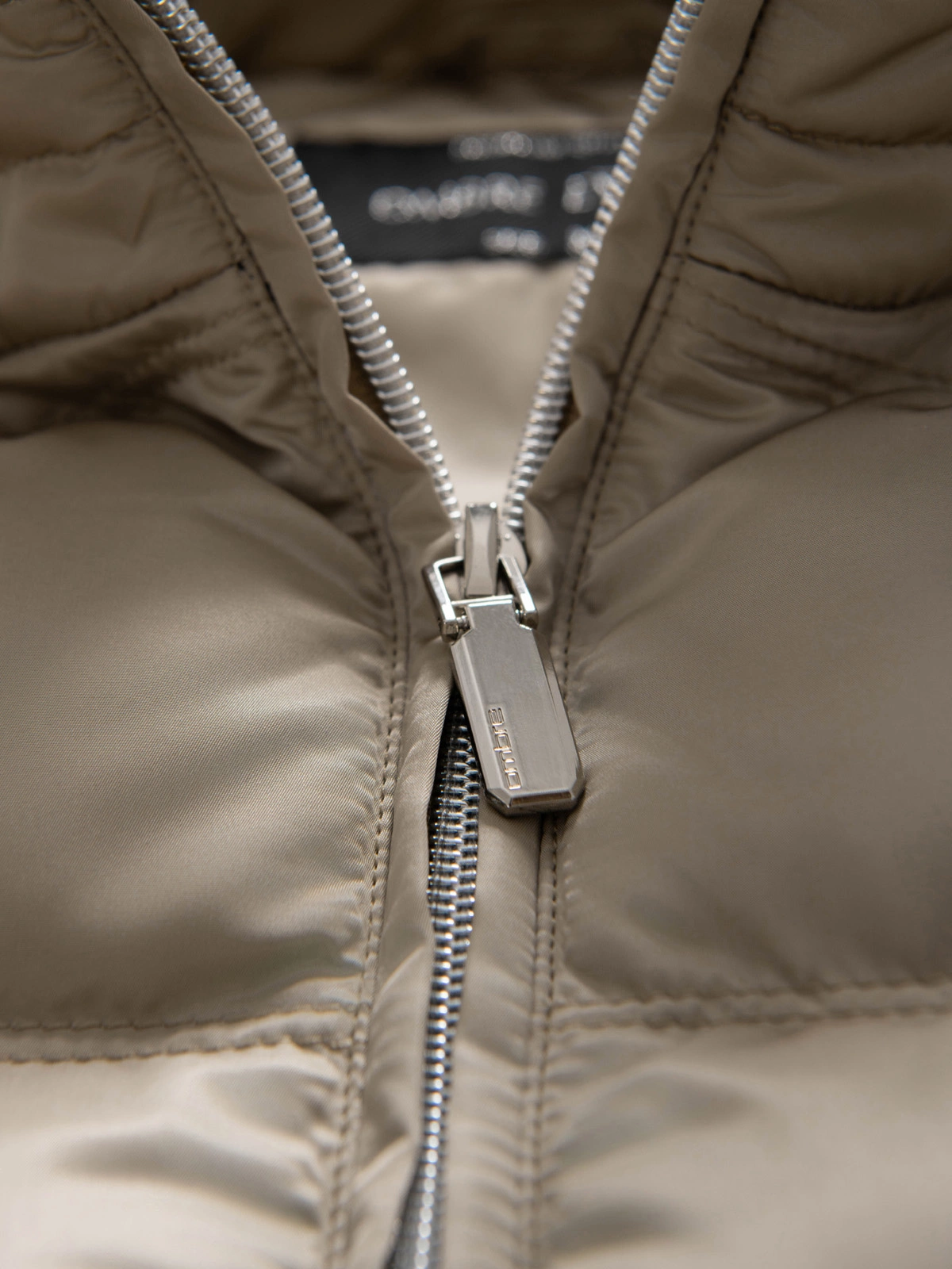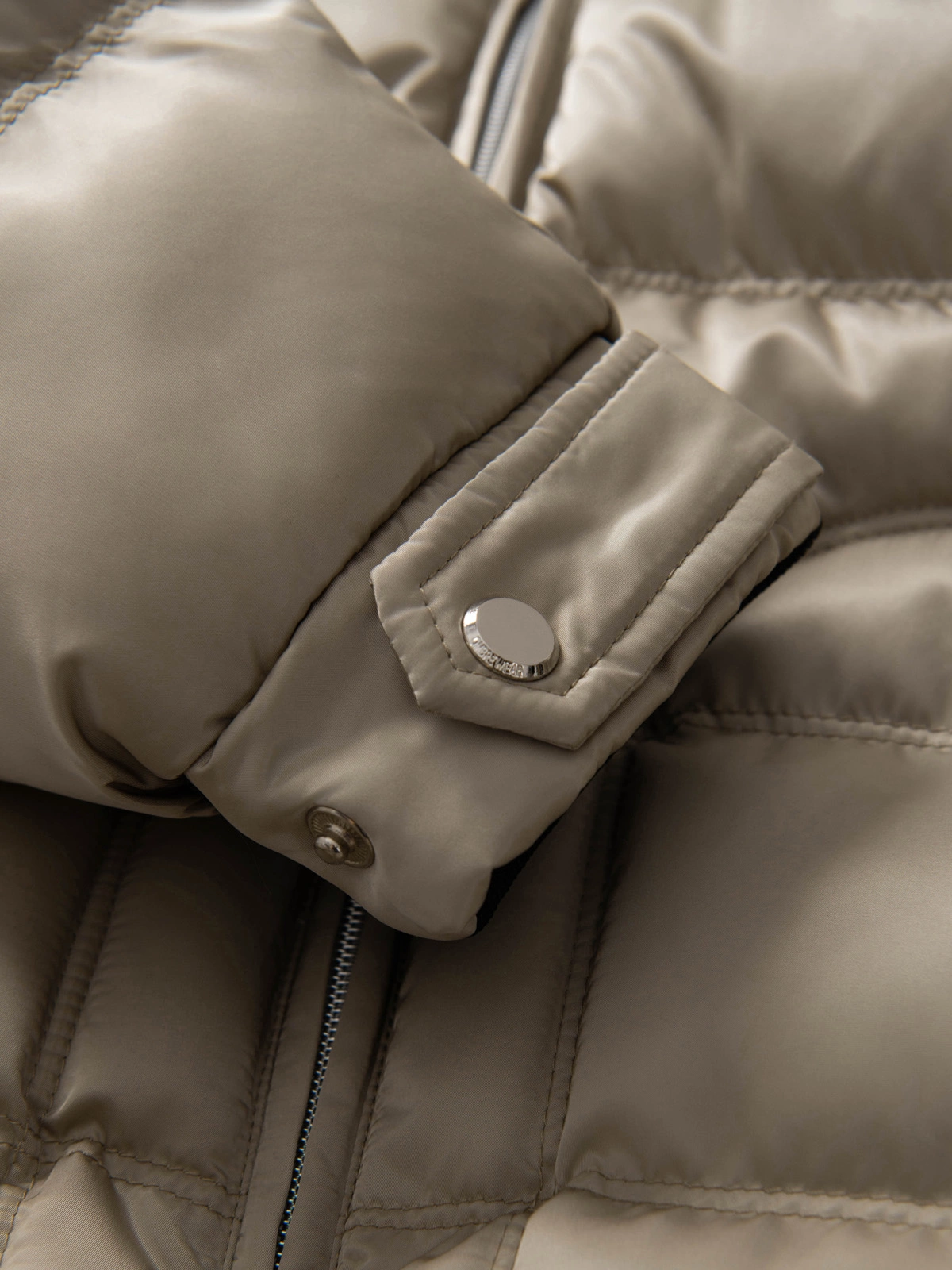 A lightweight yet warm glossy jacket that combines elegance with practicality. Its geometric quilting and stand-up collar with zipper give it a modern touch, while distinctive accessories emphasize masculine style. Ideal for colder days - both for urban and casual outfits - it combines comfort, protection and style.