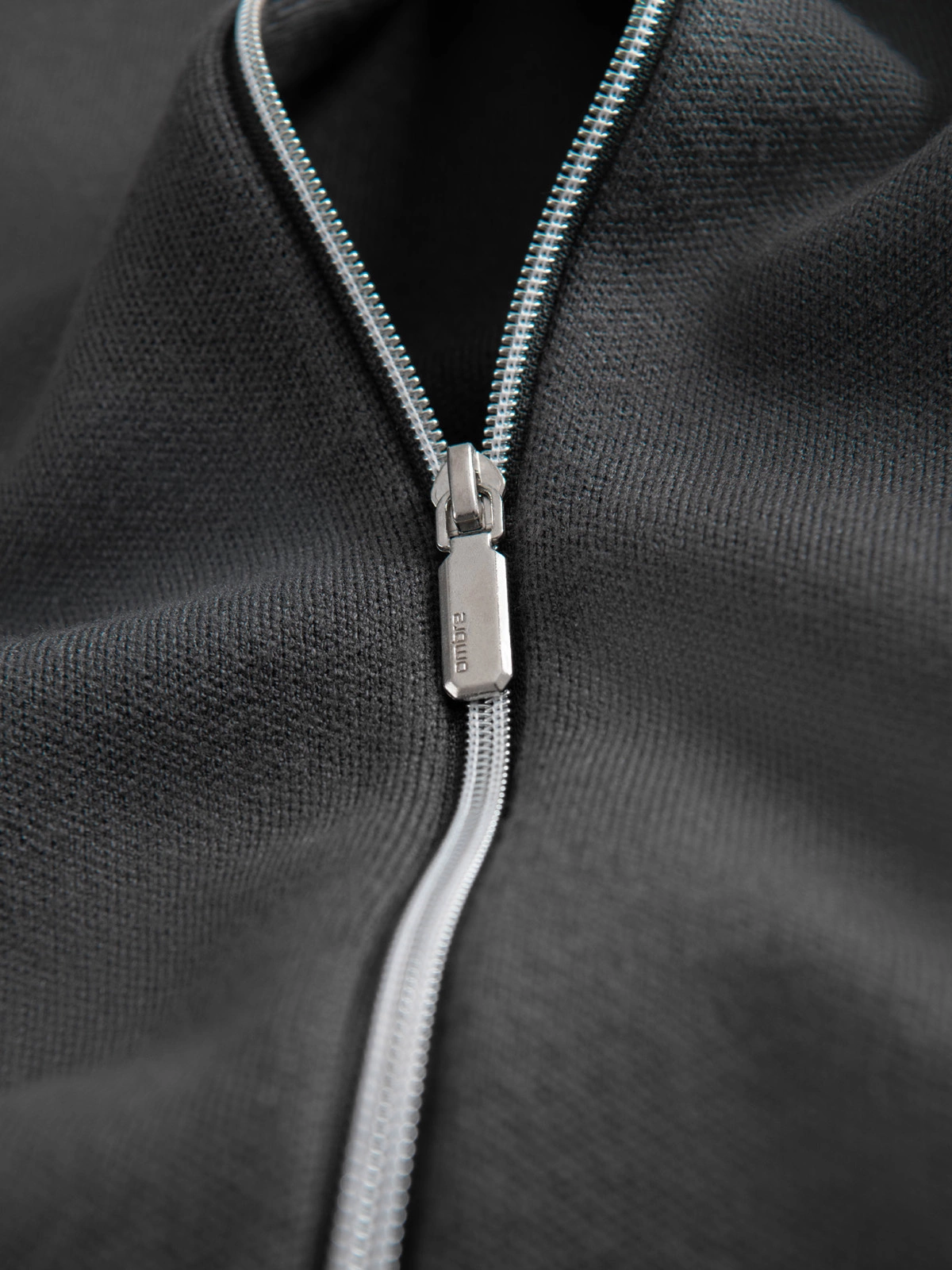 Discover a unique men's zipper sweater from the QUINTESSENCE collection - an ideal choice for men who appreciate comfort, quality and modern style. The sweater is made of knitted fabric with a smooth jersey weave, providing a pleasant fit and comfortable all-day wear. The model, which resembles the cut of a bomber jacket, is equipped with a central metal zipper, which adds modern character and functionality. It is finished with ribbed cuffs and decorated with a subtle metal pin with the brand's logo at the bottom of the sweater. It's a great base for everyday and semi-formal styling - it goes well with both jeans and chinos.