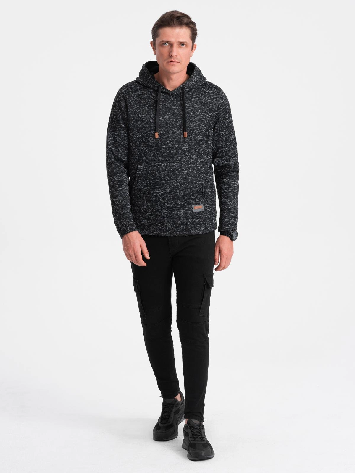 This men's unbuttoned hoodie with drawstring adjustable hood is a practical and stylish choice for everyday wear. A large patch pocket on the front adds functionality and convenience, perfect for storing small items. Made entirely of polyester, in a fashionable melange color, it combines durability with a modern design. The versatile men's sweatshirt is perfect for casual and sporty outfits.