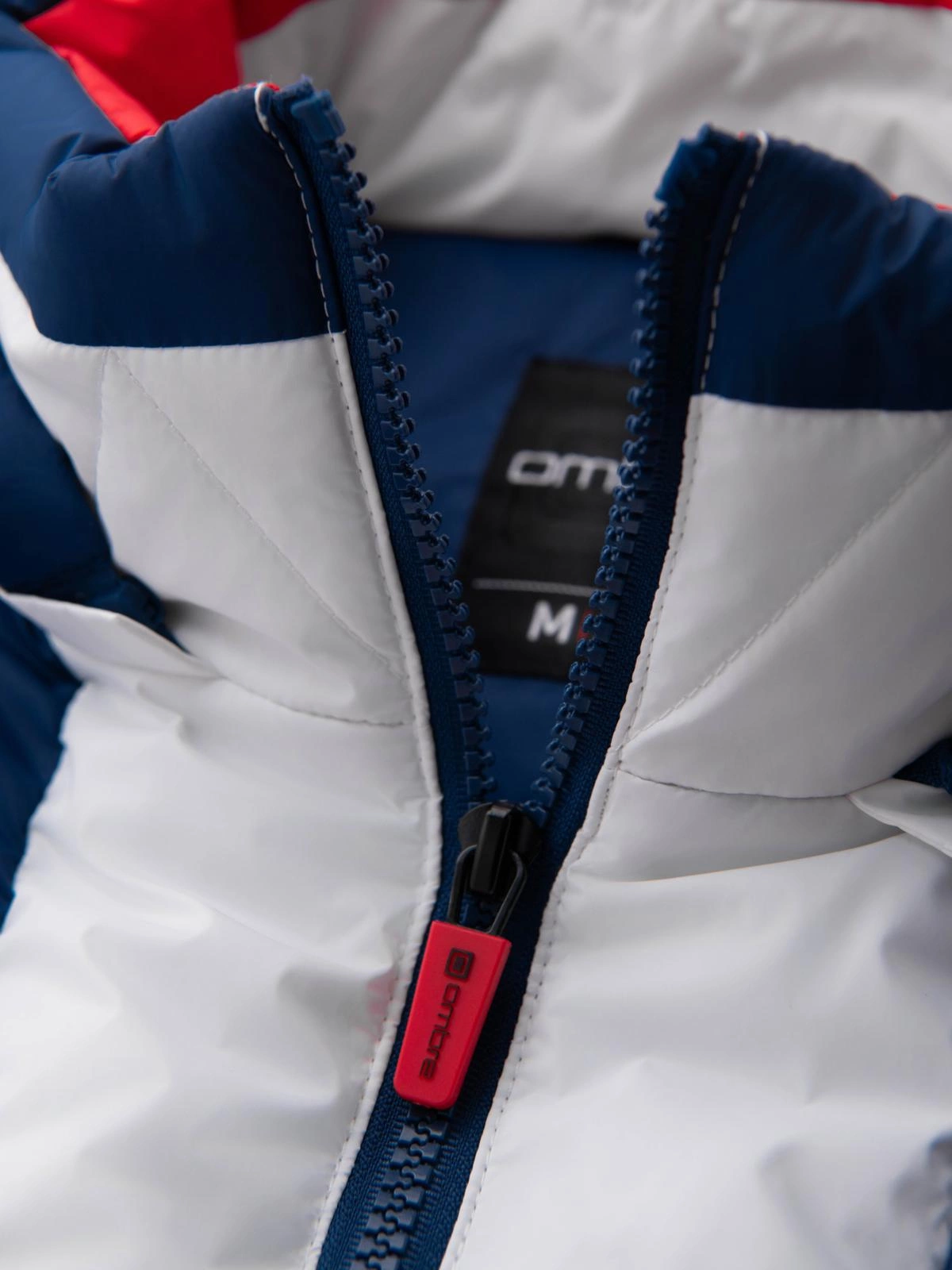 This quilted jacket is perfect for bold men who like to stand out from the crowd. The combination of sporty cut and vivid contrasting colors creates a timeless look with a retro aesthetic. The jacket will work well in both casual styling and outdoorsy sets. Light warming and high collar will allow you to feel comfortable all day long.