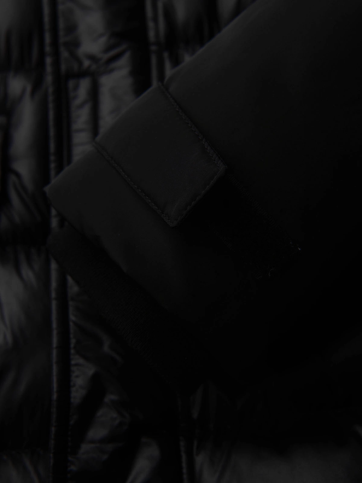 The stylish and sturdy men's jacket from the Ombre Eximio collection is for men who appreciate functionality and a refined urban look. The combination of glossy and matte panels gives it a modern touch, and the long form with plenty of filling guarantees warmth even on cold days. This is an ideal jacket for winter outings - both for work and weekend walks.