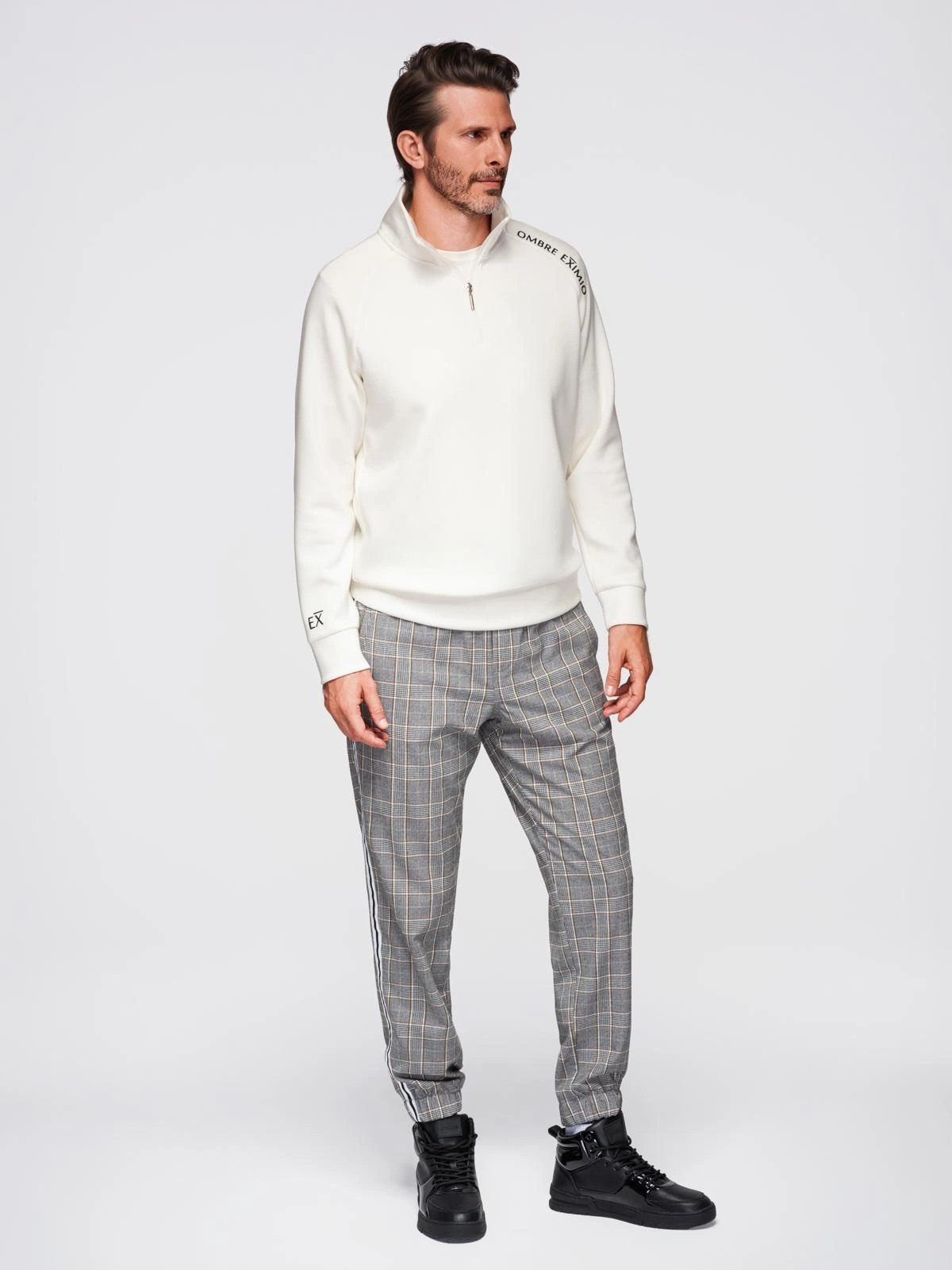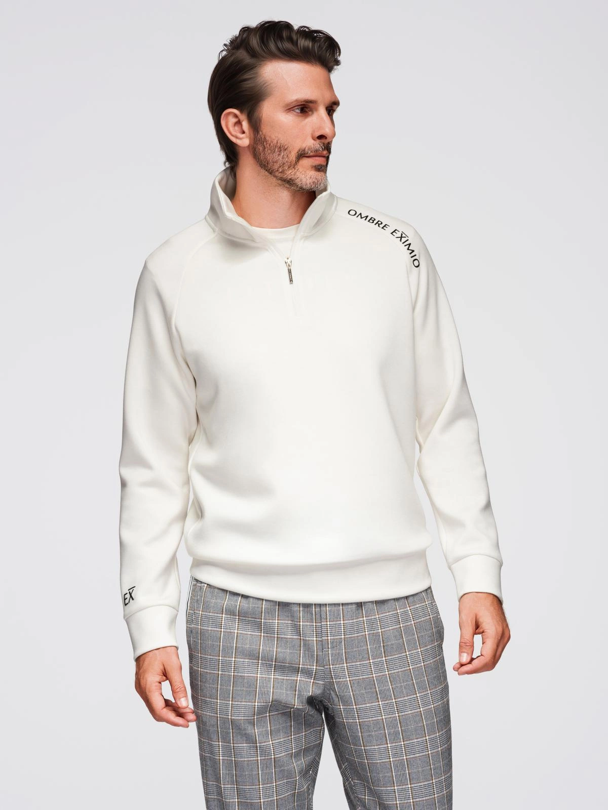 Stylish and functional - this sweatshirt from the EXIMIO collection is the perfect choice for men who appreciate modern design and everyday comfort. The smooth structure of the material with a subtle sheen, a distinctive print and high-quality workmanship make this model combine casual laid-back with fashionable character. The zippered stand-up collar adds a sporty touch, while the pleasant-to-touch knit fabric guarantees comfort whatever the situation.
