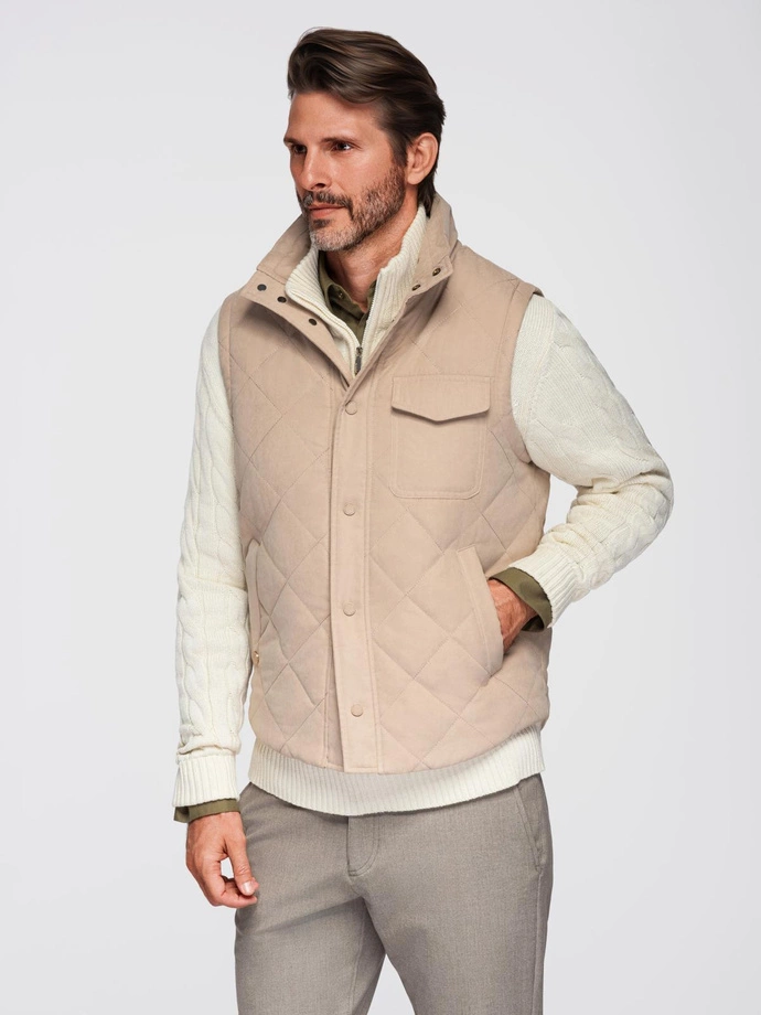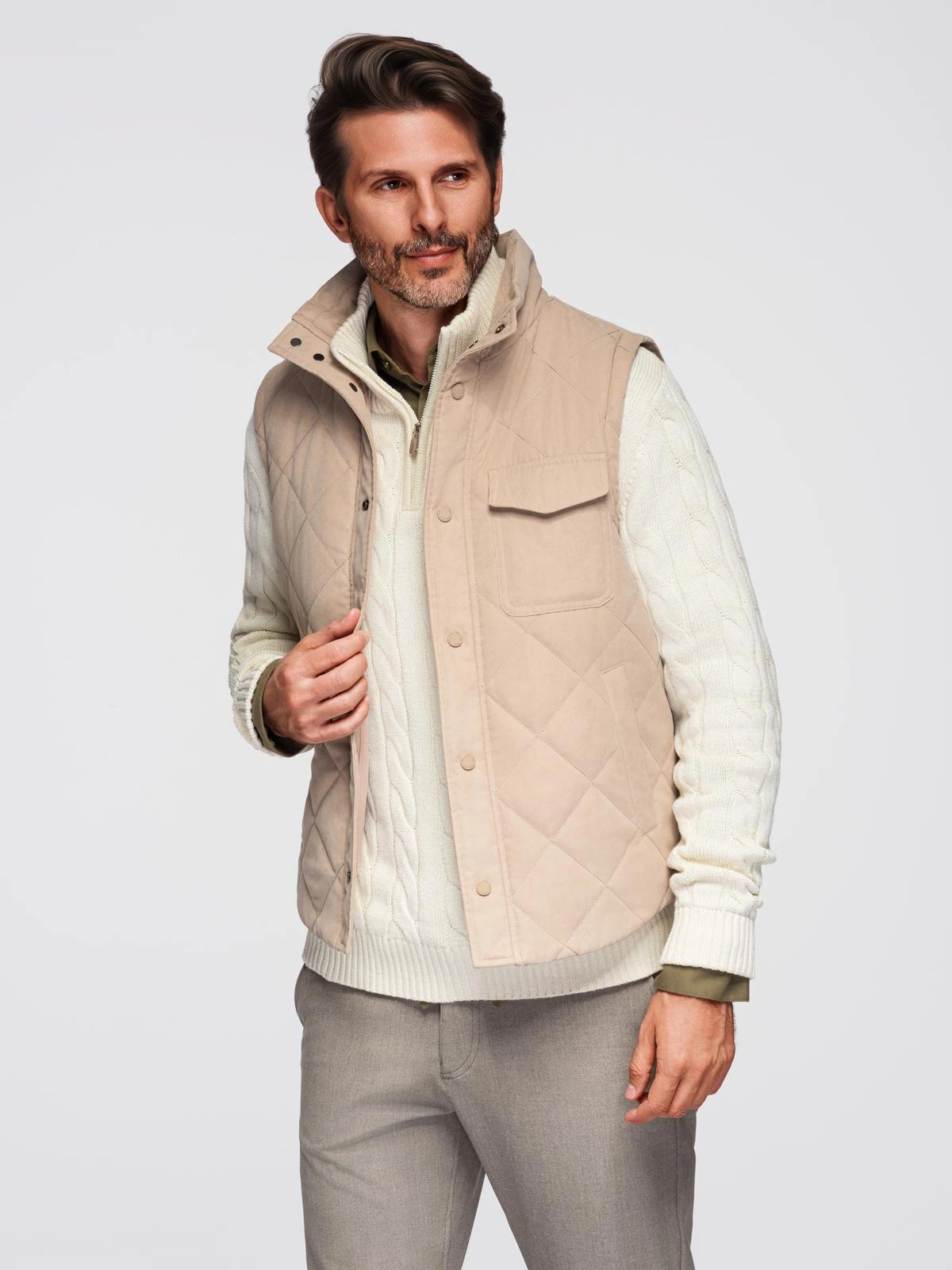 Men's peach effect quilted vest - beige V1 OM-JAVJ-0277