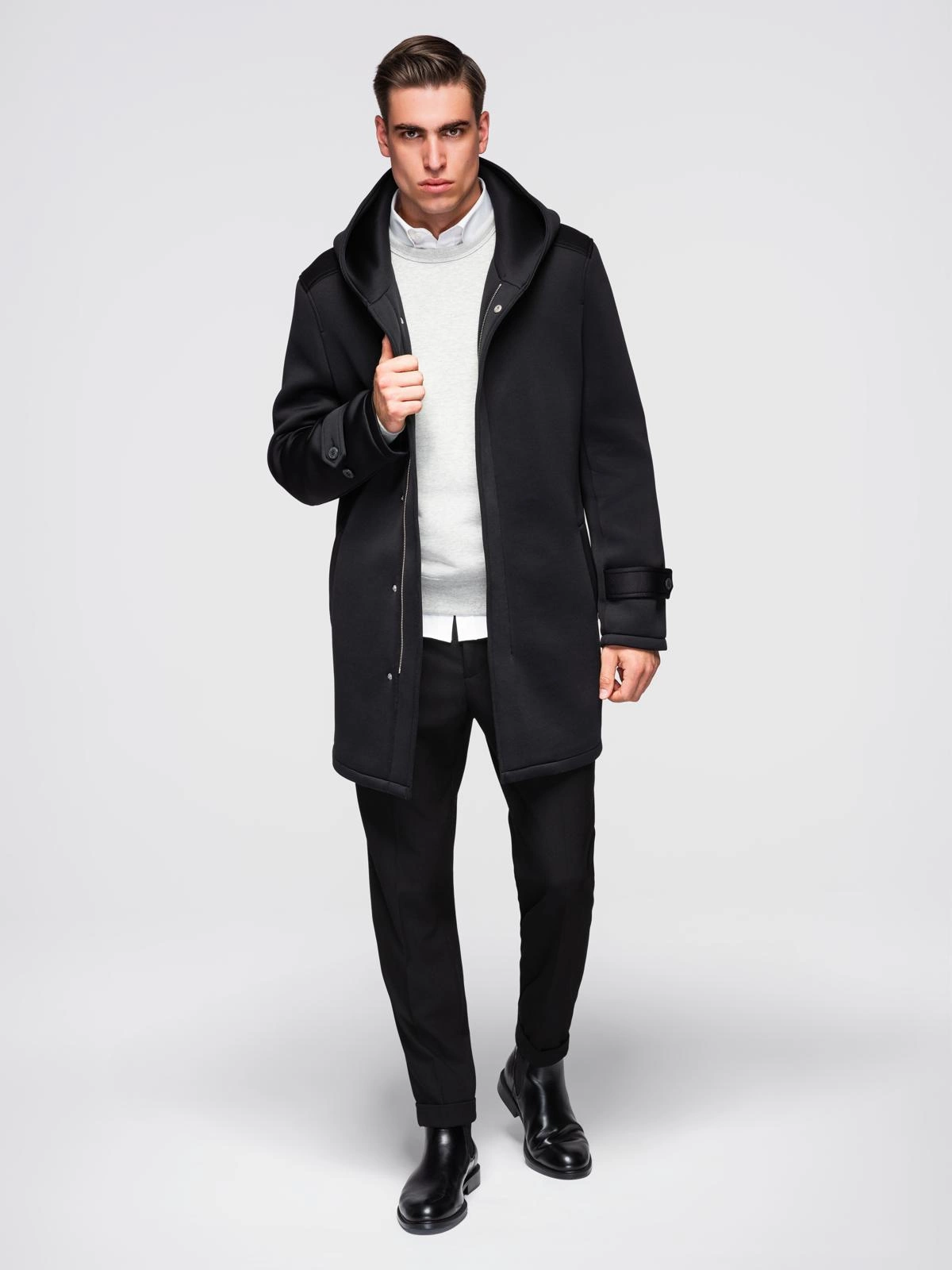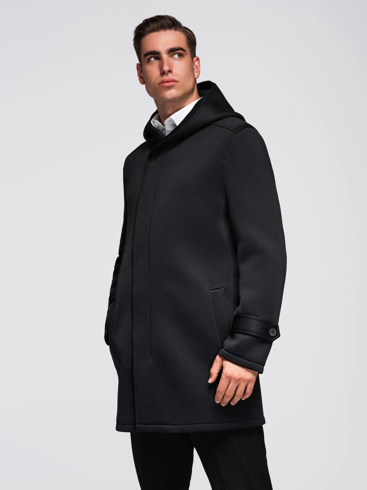 Exceptionally modern form, clean lines and technical scuba knit fabric make this coat a perfect fit in the urban closet of the modern man. The model from the Eximio line combines minimalist style with functionality: the presence of a hood, the smooth structure of the material and the refined details give it an elegant, yet everyday character. Ideal for transitional seasons and cooler days.