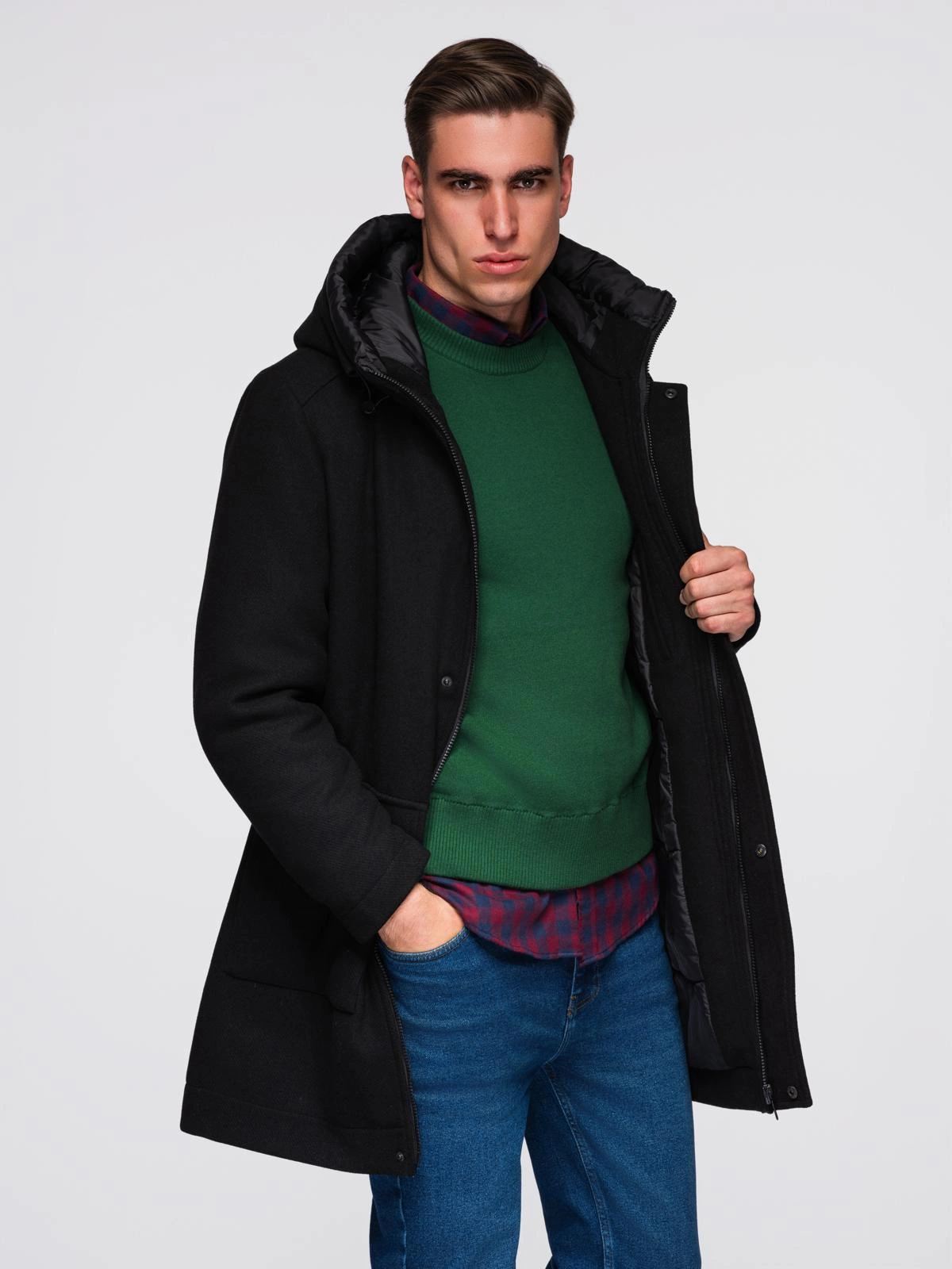 - Lightweight men's coat with hood
