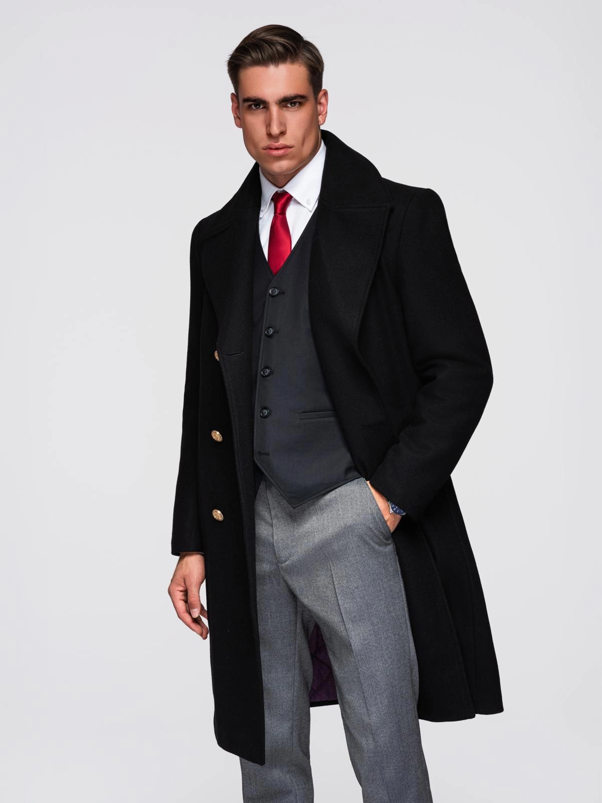 - Collar finished with a welt