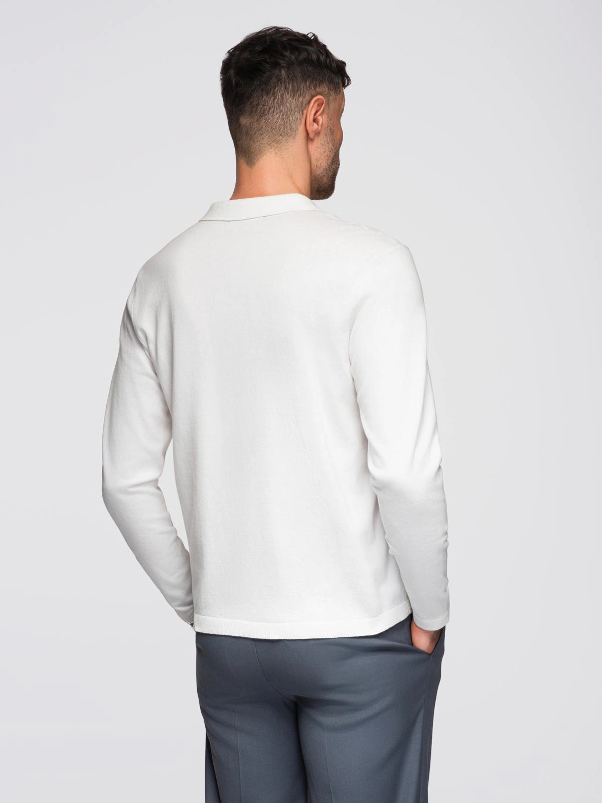 Elegant polo made of structured pique knit is a fashion proposition that fits perfectly into preppy and old money aesthetics. The structured knit with viscose in the composition makes the styling more refined. The shirt has slits at the bottom and a slightly elongated back, thanks to which it sits perfectly on the male figure, neatly covering up its imperfections. The ribbed trim on the sleeves and collar, as well as the emblem on the chest, gives it a slightly sporty touch