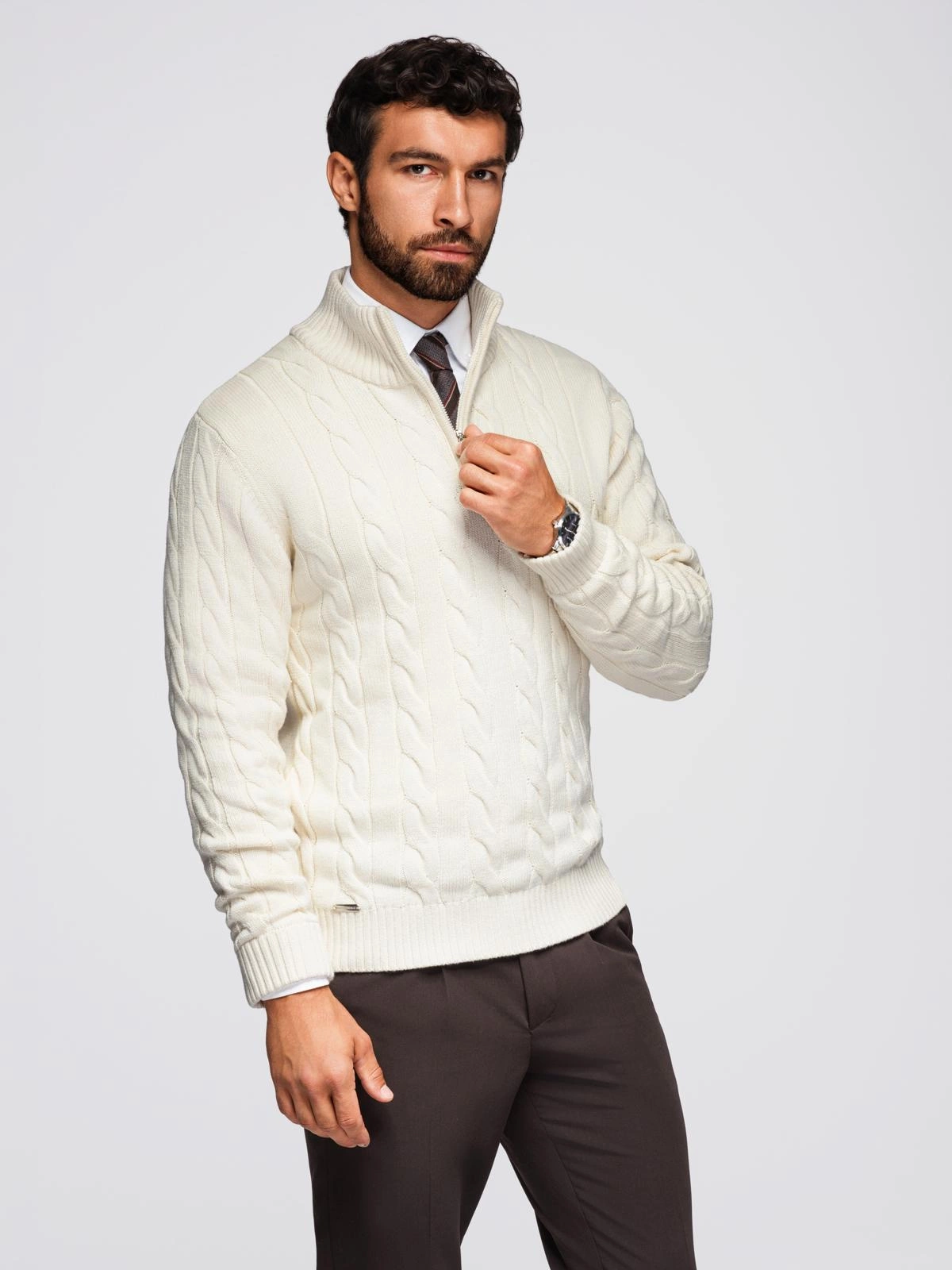 A sweater that combines elegance with everyday comfort. The model from the Quintessence line is a stylish proposition for men who appreciate classic design in a modern way. The plaid weave and zipper in the turtleneck make it perfect for both casual styling and more elegant combinations - for example, with a shirt and tie. The whole is complemented by a subtle metal pin at the bottom hem.