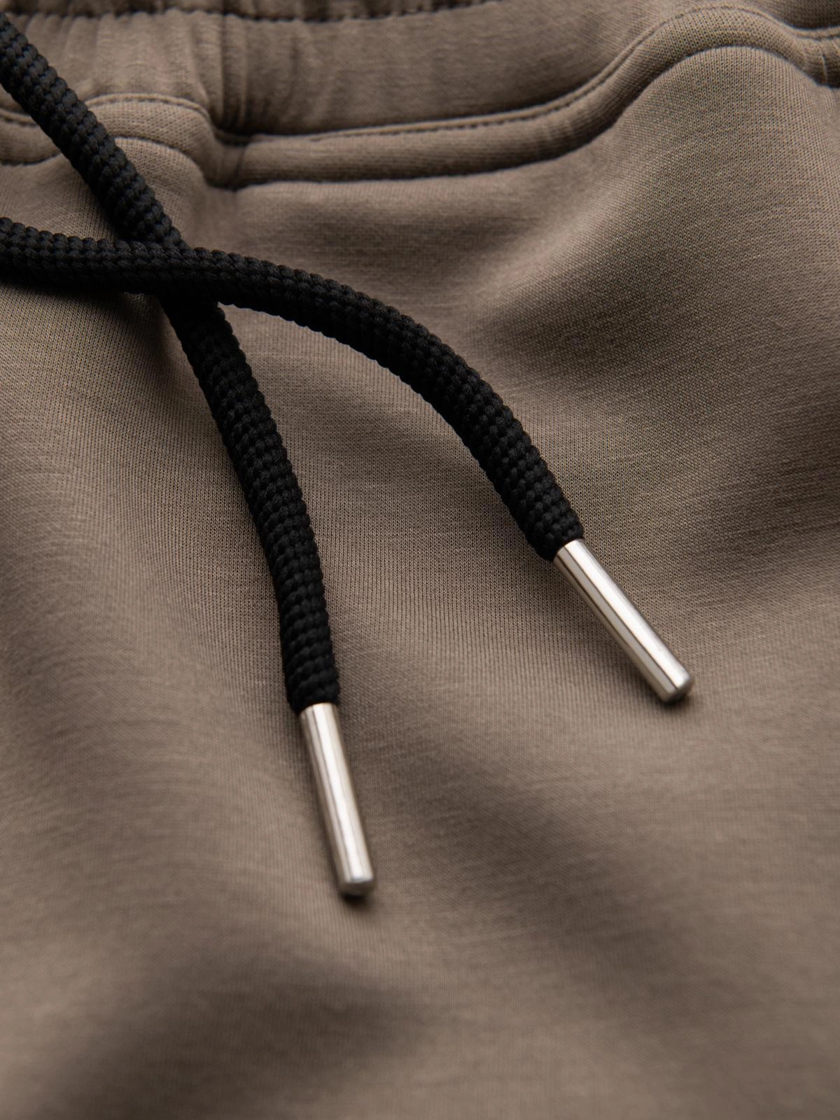 Jogger-style sweatpants made of stretch knit fabric with a soft sheen for comfort and freedom of movement. The tapered leg with a drawstring hem and contrasting piping add a retro sporty touch. The modern design is complemented by cut pockets, a rubber patch at the waist, and logo details on the pockets and drawstring ends.