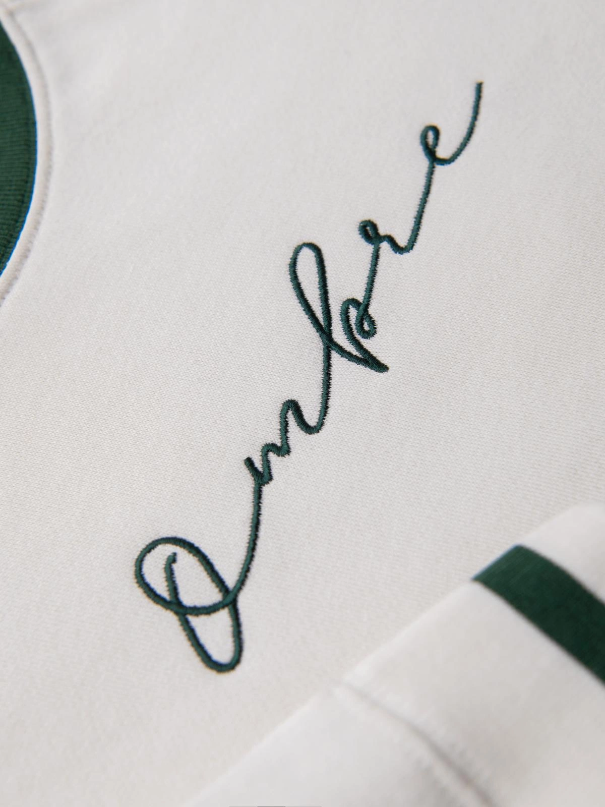 - neckline, hem and cuffs finished with ribbed cuffs with a contrasting stripe
