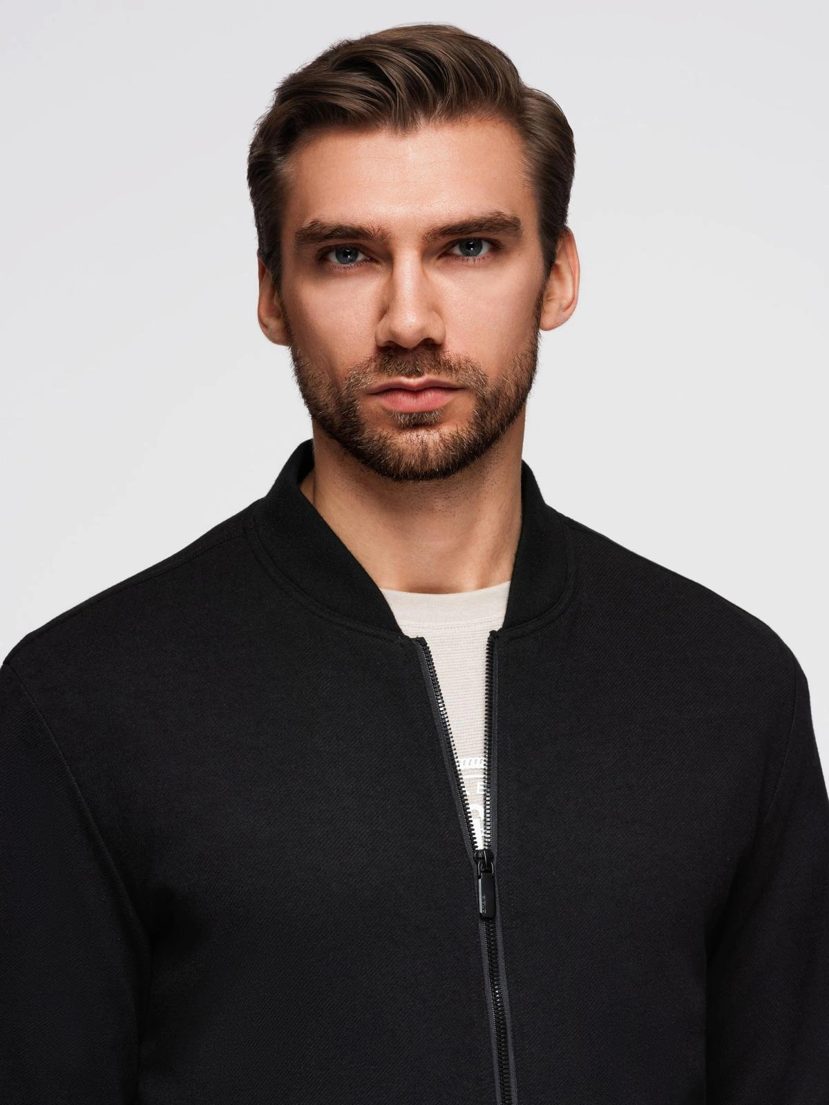 Subdued, modern and designed with attention to detail - the bomber jacket from the Quintessence line is for men who appreciate the combination of functionality and sophisticated style. Its technical fabric and unique weave give the overall look a distinct character, while subtle accessories, such as the logo patch on the back, complete the minimalist look. This is a model that will work well both in urban styling and as a light jacket for the transitional season.