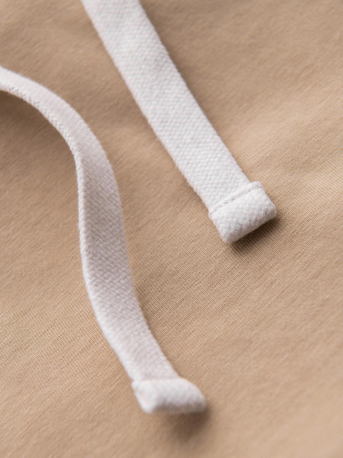 This stylish hooded T-shirt will bring a breath of fresh air to a man's closet. The T-shirt was sewn from cotton jersey, as it was designed to maximize wearing comfort. The original look of the T-shirt is highlighted by intriguing double trims in contrasting colors and a comfortable hood with a flat drawcord. The practical combination of a hoodie and a classic t-shirt is sure to appeal to lovers of unobvious everyday solutions.