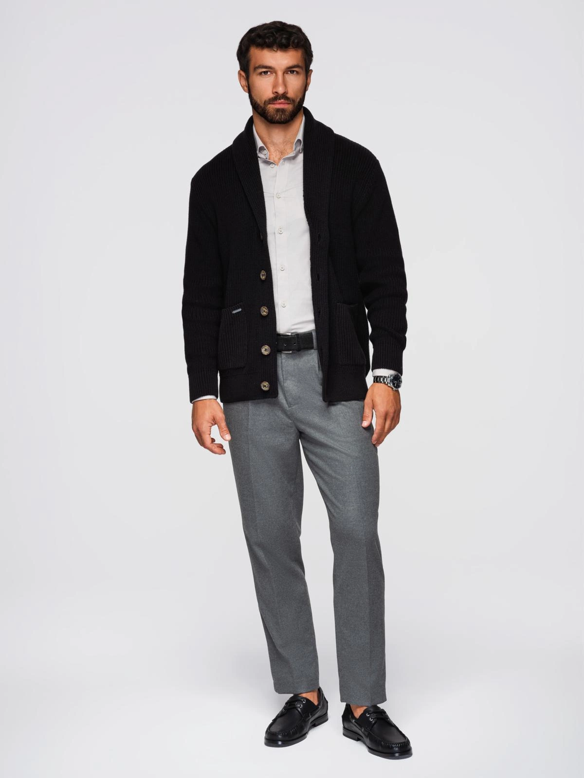 The stylish cardigan by Ombre Quintessence is the perfect choice for men who appreciate comfort and elegance. Made from a pleasant-to-touch knit of pure cotton, it features a distinctive shawl collar and patch pockets. The classic regular cut and smooth weave make the sweater perfect for both casual and more elegant styling. Details such as branded buttons and a metal pin add a modern twist.