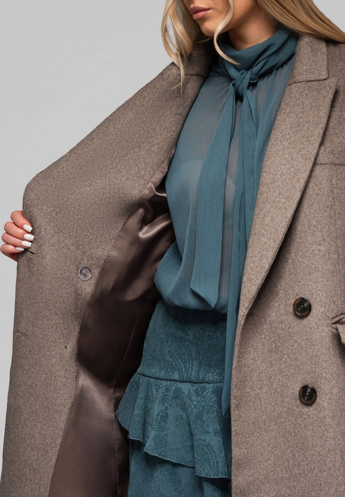 Women's long wool coat LARICA OW-COLC-0100 v1 - taupe