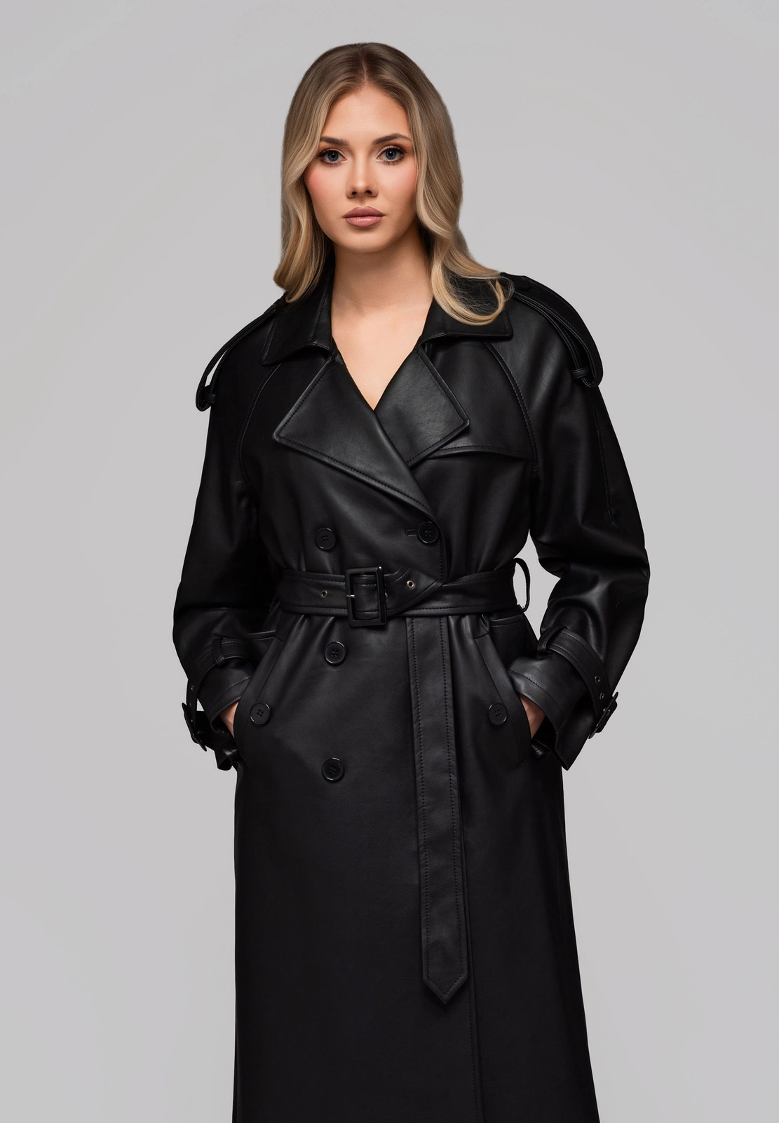 • external buttoned pockets with a trim