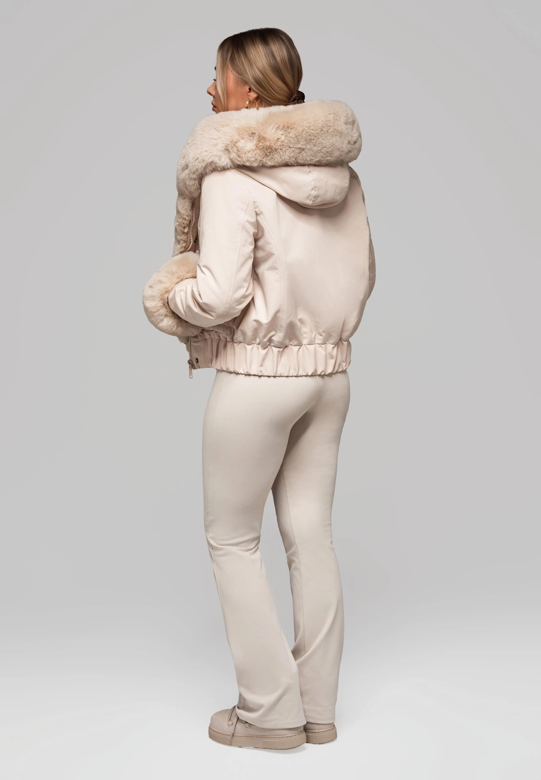 Women's jacket with detachable fur OW-JALP-0100 v2 - beige