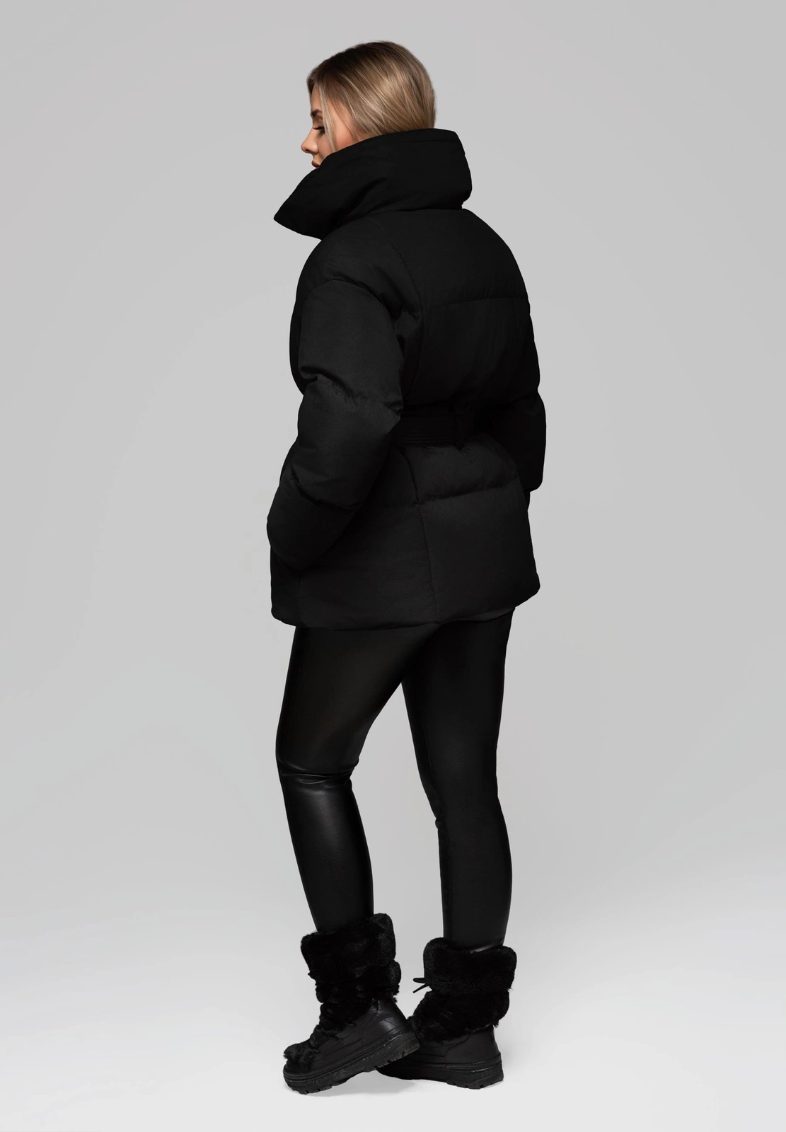 Women's quilted jacket with belt and collar OW-JAHP-0106 v1 - black
