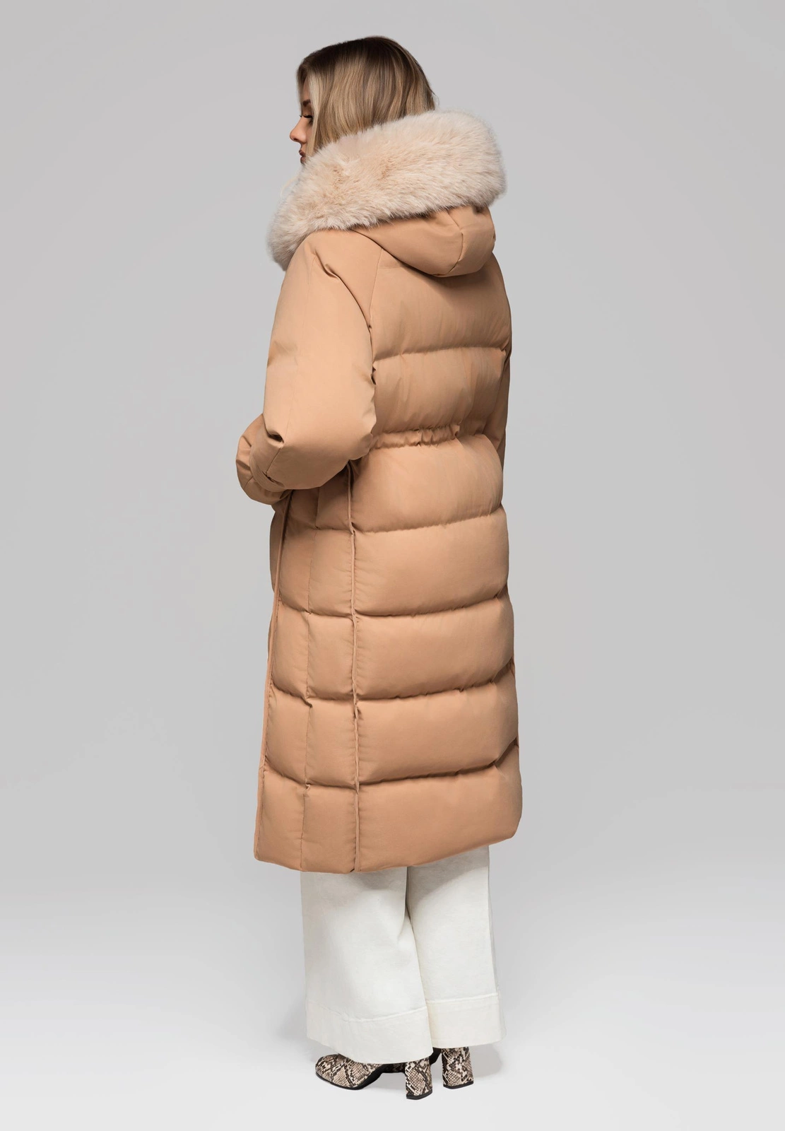 Women's long jacket with fur OW-JALJ-0107 v1 - brown