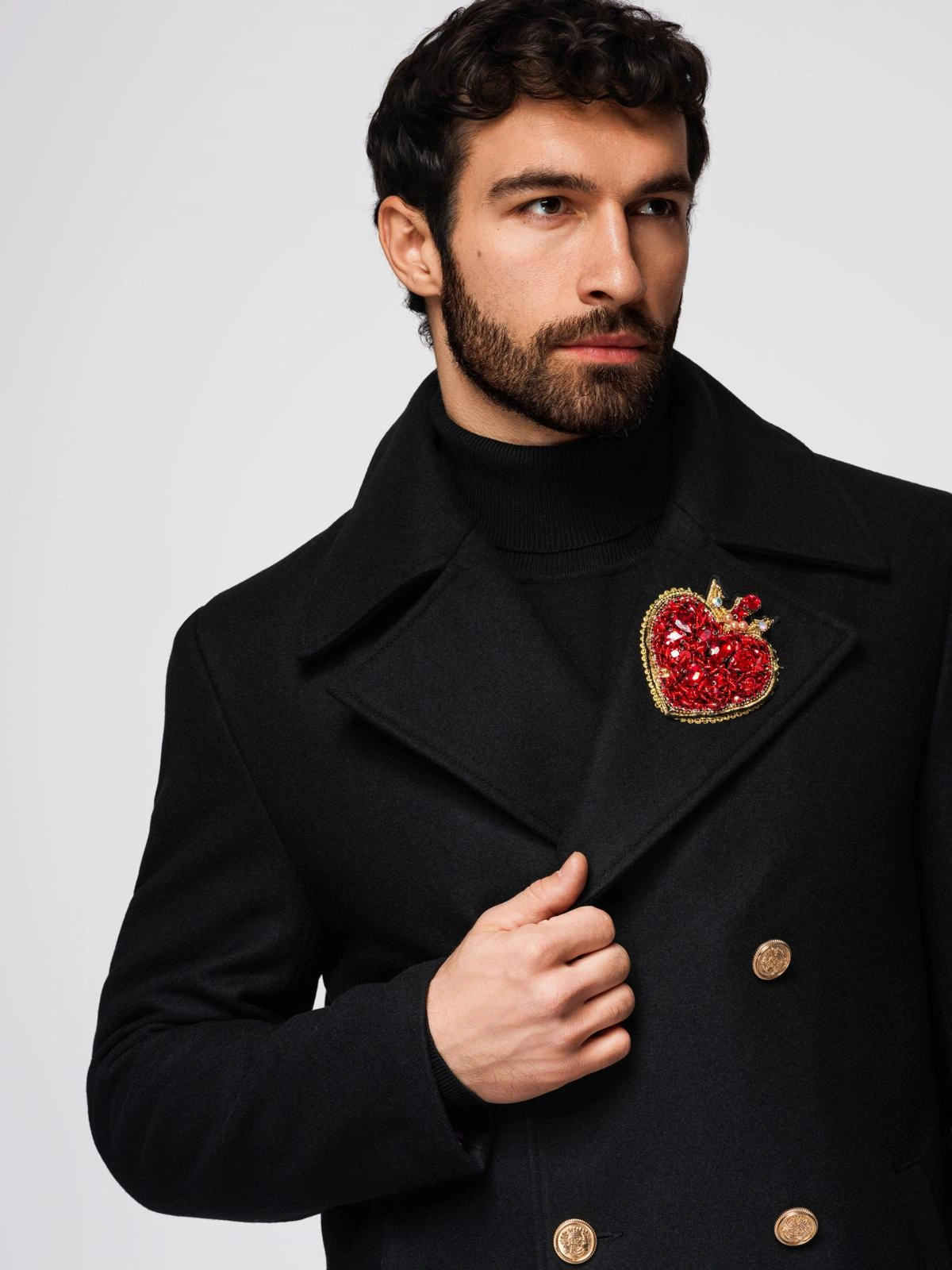 - Wide lapels to protect the neck from the cold