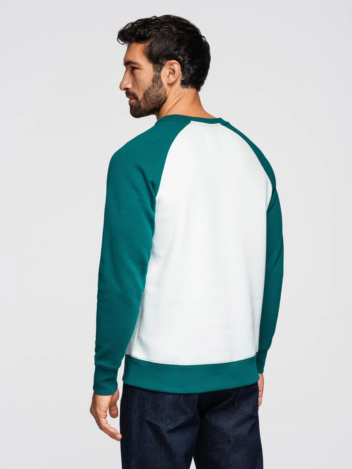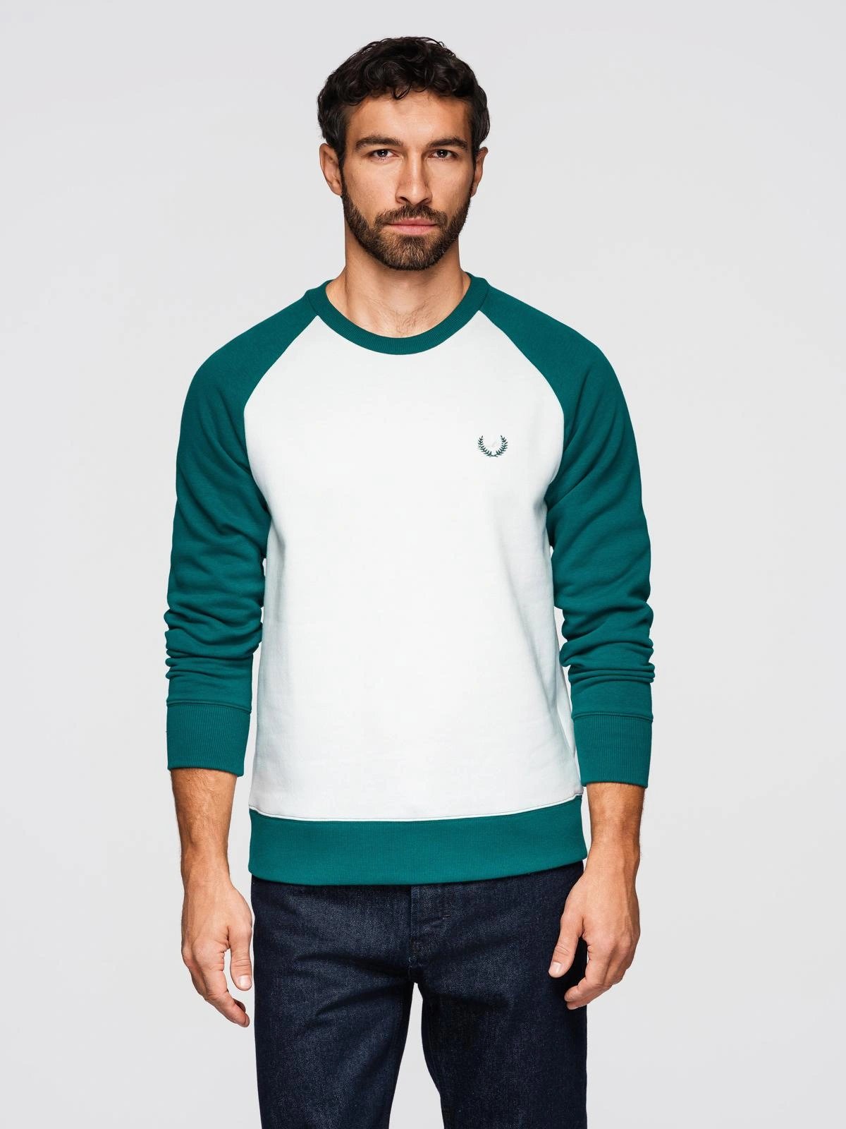 Men's regular cut sweatshirt with reglan sleeves, made of smooth cotton-polyester knit. It features a round neckline. Finished with contrast color ribbing at the sleeves, neckline and hem. Decorative embroidery on the chest.