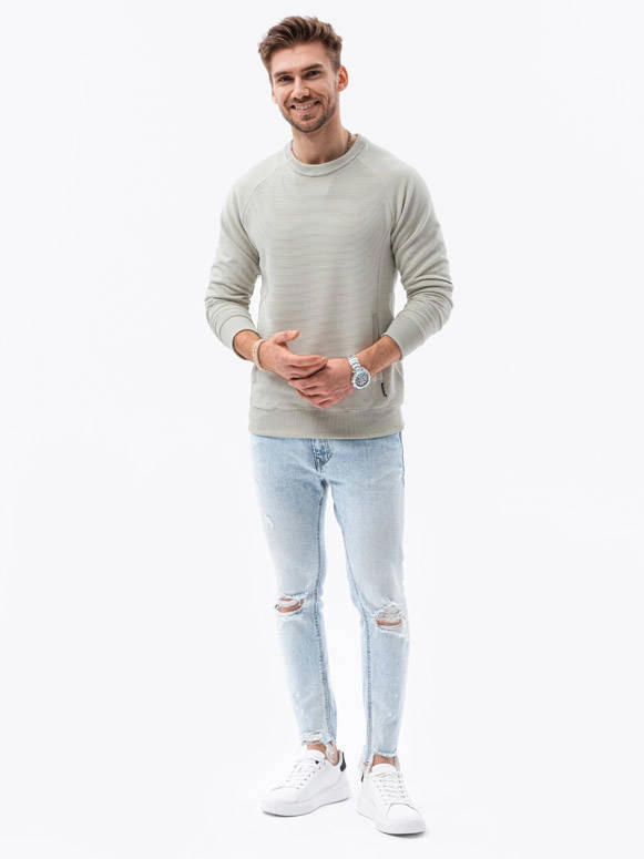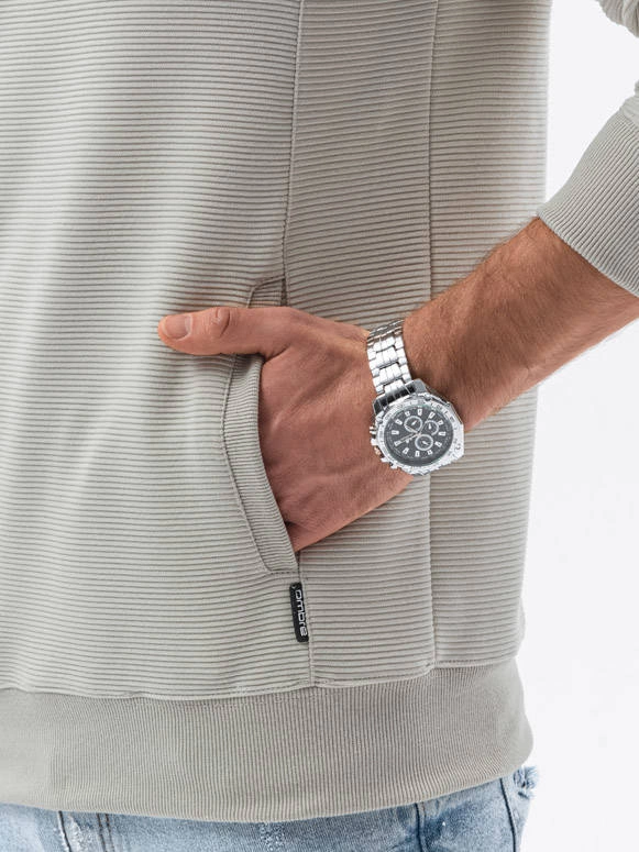Men's sweatshirt tucked in over the head, with reglan sleeves. The sweatshirt is made of ottoman knit fabric. The sweatshirt has introduced cuts, in which pockets were placed. The slightly fitted cut makes it fit perfectly on the body. The sweatshirt gives great styling possibilities, it can be combined with both jeans and sweatpants. Great for daytime styling.