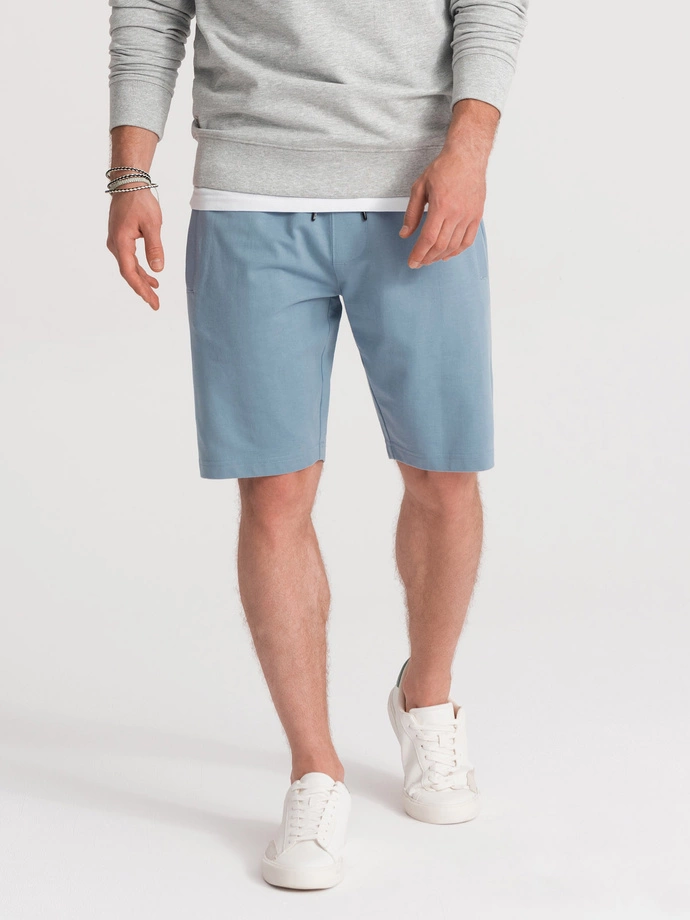 Men's sweat shorts with a classic cut. They will be perfect for casual styling. The shorts are drawn at the waist with a contrasting drawstring. Made of 100% cotton knit fabric with french terry finish! Provide comfortable wear.
