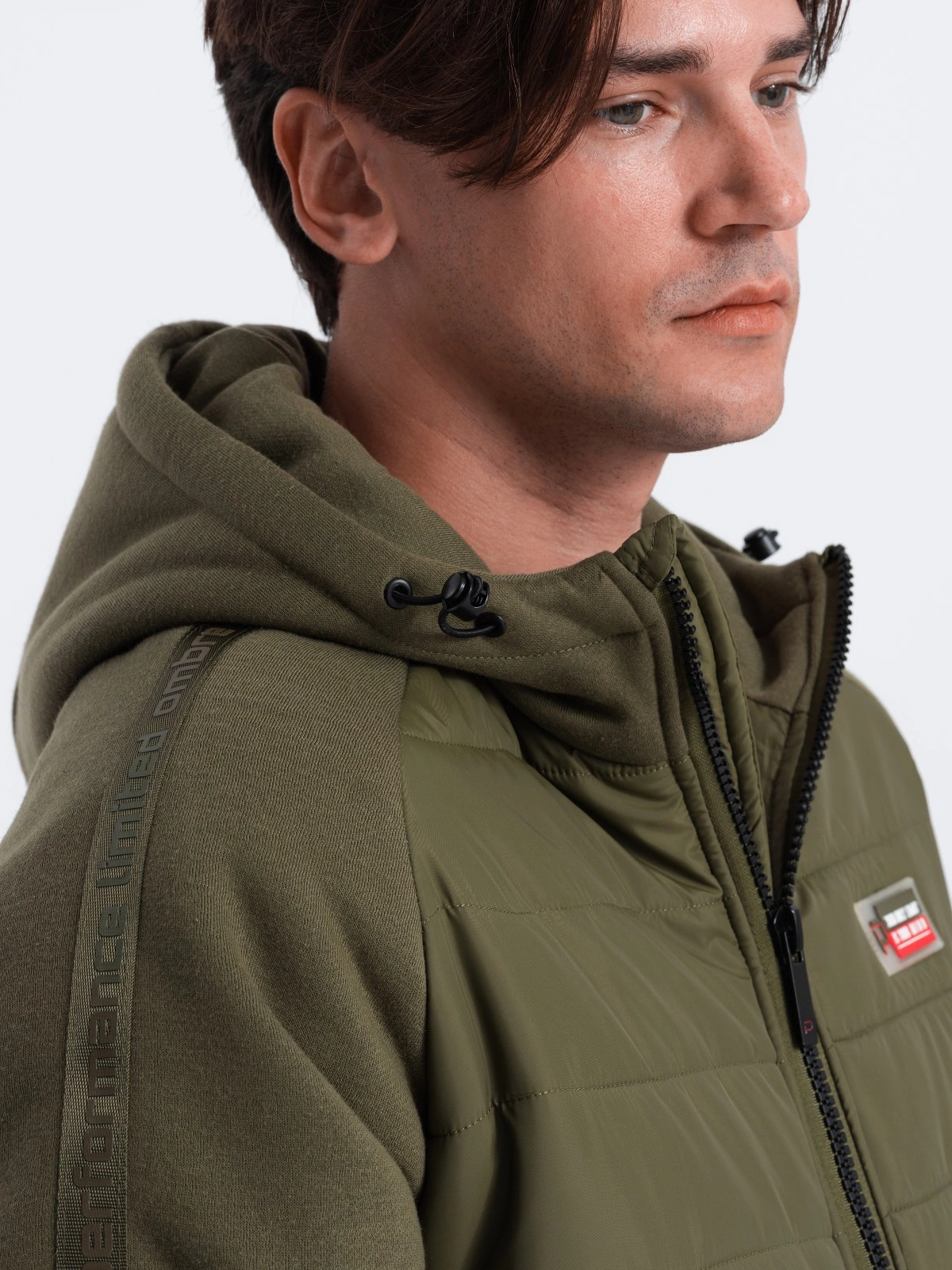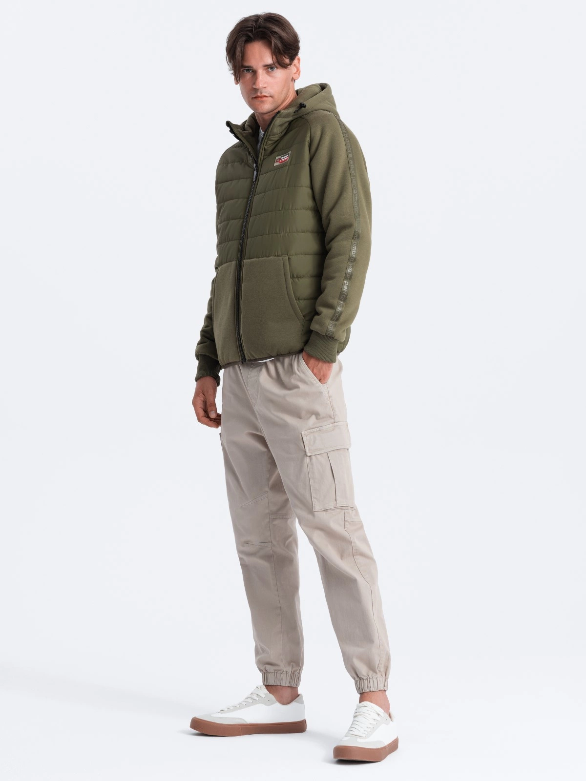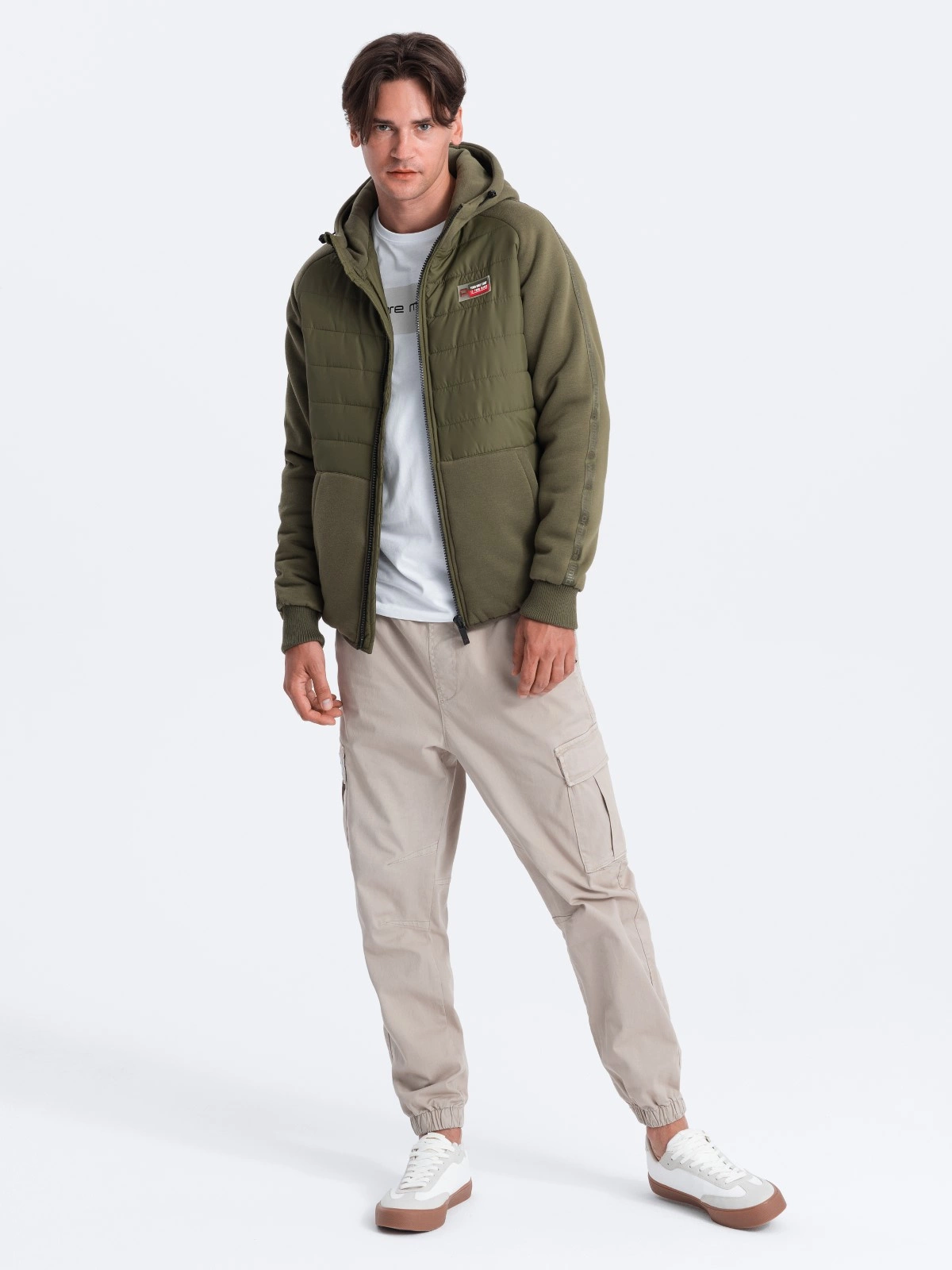 Ta stylowa kurtka z elementami dresowej dzianiny łączy funkcjonalność stylu outdoorowego z wygodą stylu athleisure. Zestawienie ze sobą gładkiej pikowanej tkaniny z miękką strukturalną dzianiną nadaje jej interesujący wygląd. Charakterystyczne naszywane kieszenie oraz lamówka z logotypem subtelnie podkreślają sportowy charakter kurtki. Dzięki wszechstronnemu zastosowaniu, z pewnością znajdzie swoje miejsce w męskiej szafie lub bagażu.