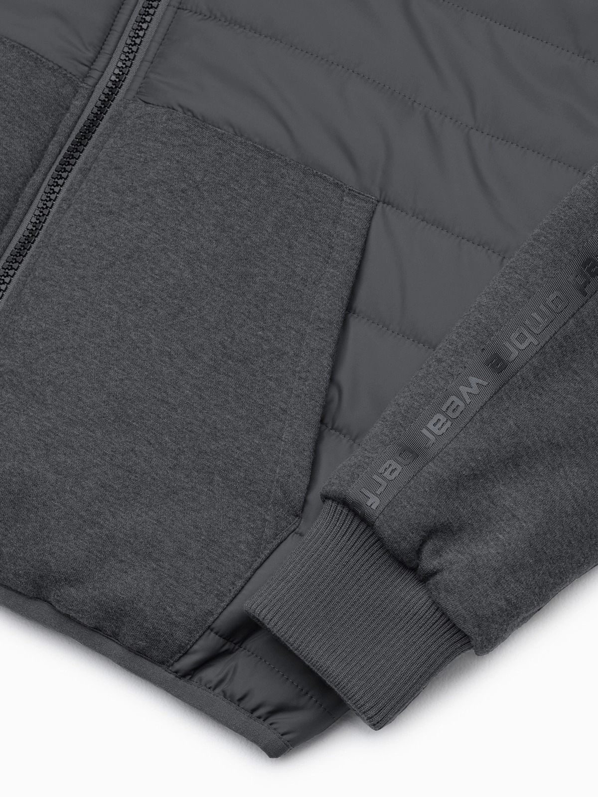 - naszywki z brandingiem na piersi i na dole kurtki