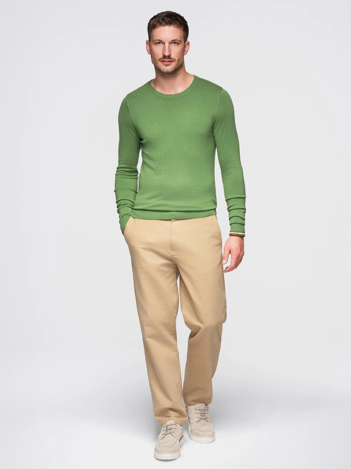 Gładki, jednokolorowy męski sweter z kolekcji Ombre Basic oferuje szeroki zakres możliwości stylizacji. To ponadczasowy model, który spodoba się miłośnikom prostych, klasycznych rozwiązań. Gustownie podkreśli zestawy biurowe oraz wyjściowe, a także doda elegancji outfitom na co dzień. Przyjemny w dotyku materiał z wiskozą dobrze układa się na ciele i zapewnia swobodę noszenia.