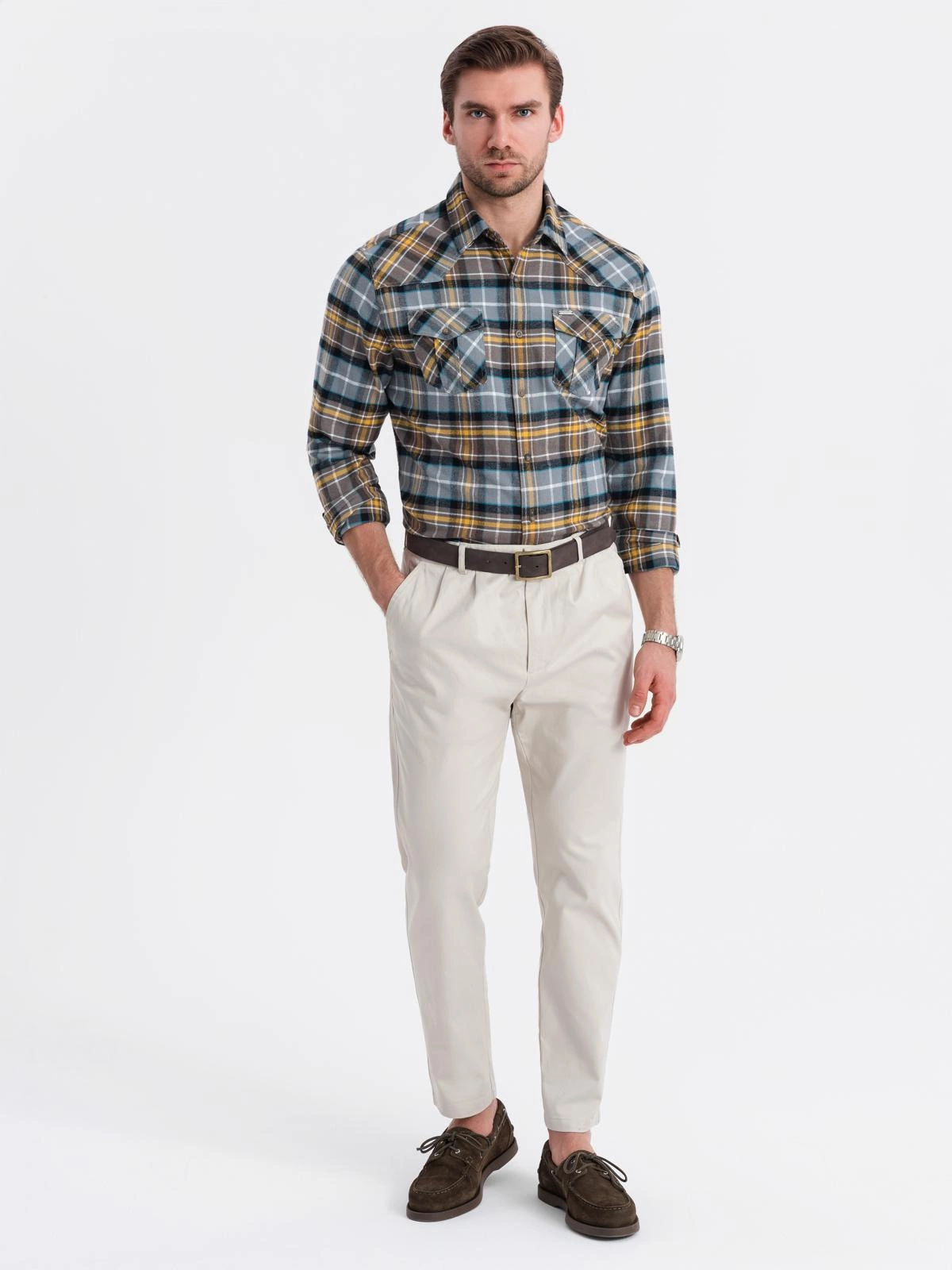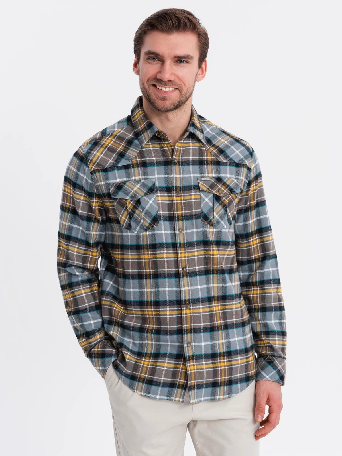 - Flanelowa, bawełniana koszula slim fit