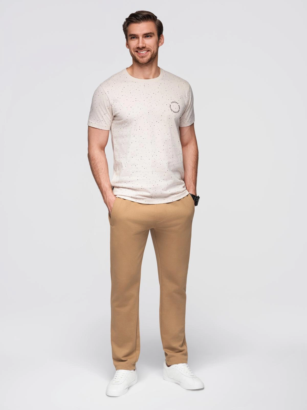 Bawełniane spodnie dresowe przypadną do gustu mężczyznom doceniającym praktyczne rozwiązania. Komfort noszenia zapewnia miękki bawełniany materiał z efektem peach. Ponadczasowy fason doskonale łączy wygodę ze stylem – męskie dresy pasują zarówno do zestawów casualowych, jak i sportowych. Spodnie dresowe z lekko zwężoną nogawką i pasem ze ściągaczem świetnie podkreślą męską sylwetkę.